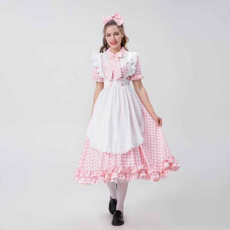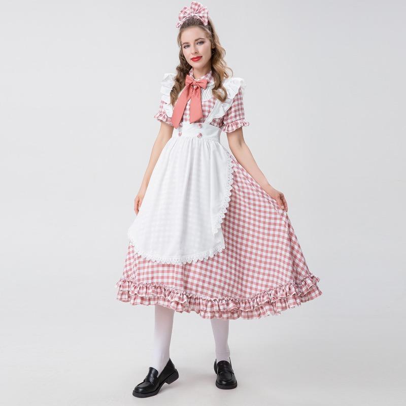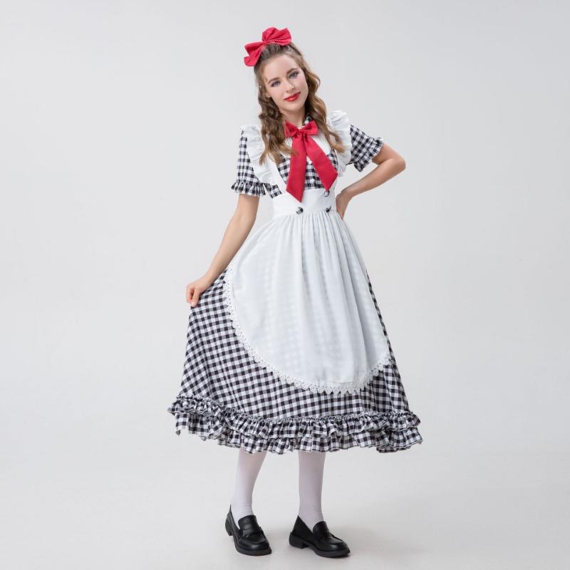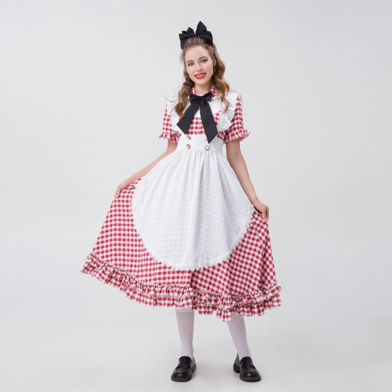 Костюм Октоберфест для взрослых женщин Красно-белое клетчатое кружевное платье Октоберфест Костюм горничной для косплея