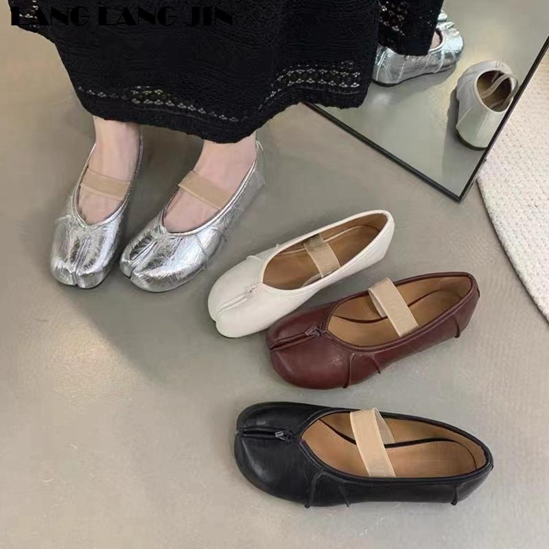 2025 Модный бренд Таби Обувь ниндзя Женские балетки с плоской подошвой с раздельным носком Балерины Женские лоферы Каблуки Женские мокасины Серебристые Mujer