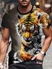 Мужская футболка с 3D-принтом тигра, с коротким рукавом, с круглым вырезом, дышащая, эластичная, повседневная, модная, для улицы, для вечеринки, для ношения на выходных, топы