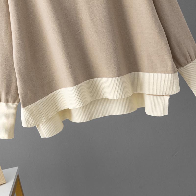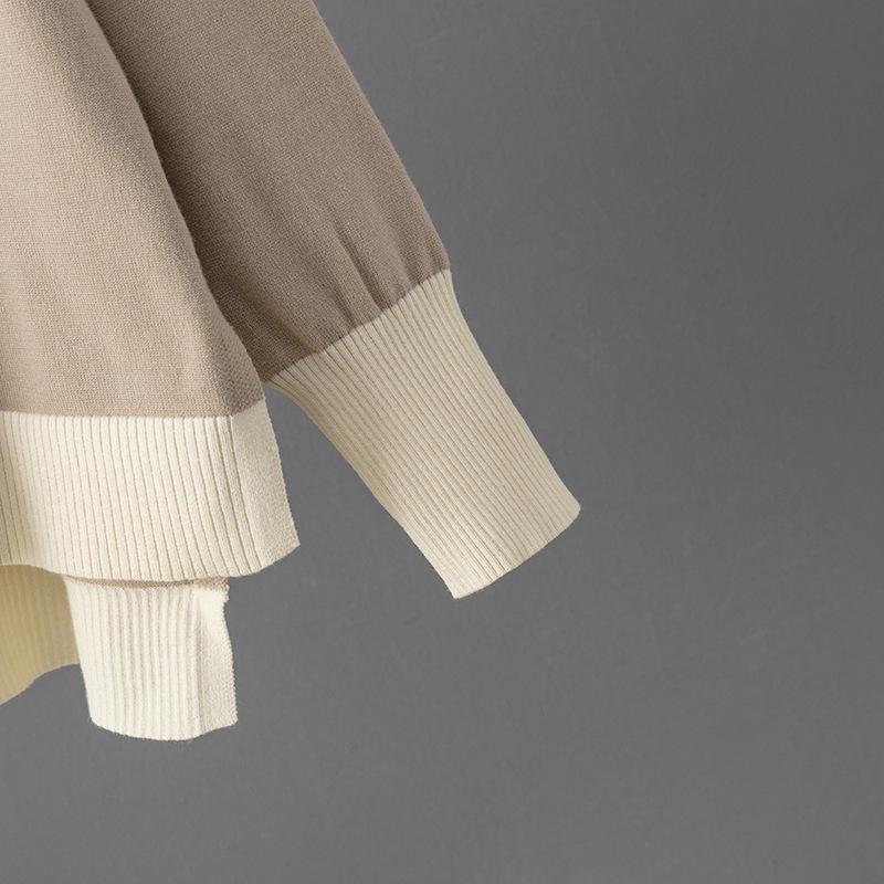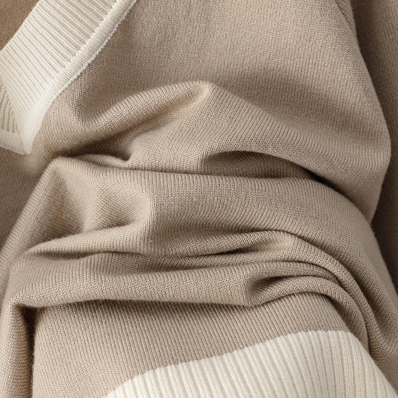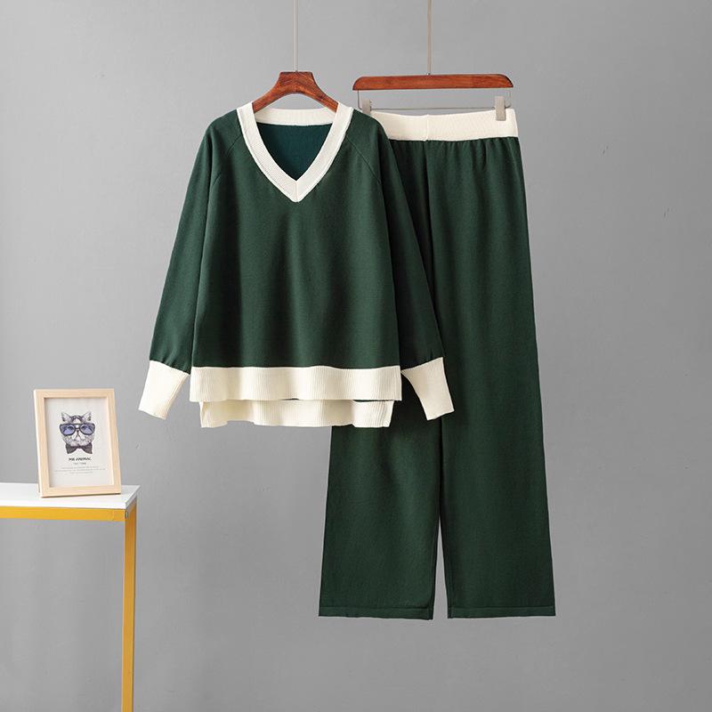 Зеленый контрастный свитер с V-образным вырезом и комплект свободных широких брюкРазмер