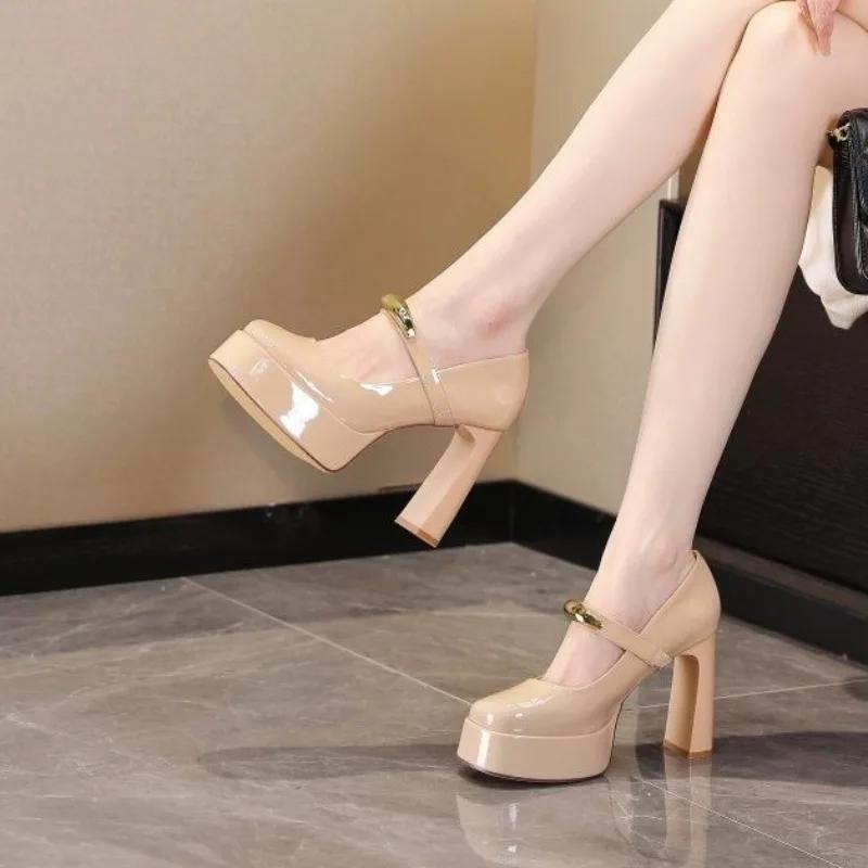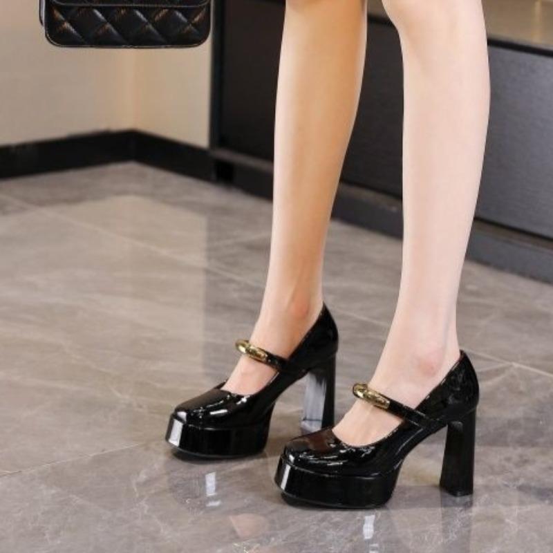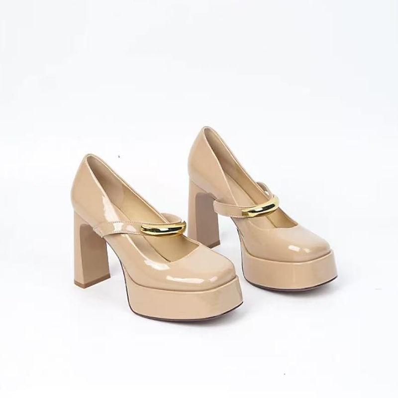 Весна и Лето Новые Туфли на Платформе с Квадратным Носком, Темпераментные, Универсальные, Однословные, с Металлической Пряжкой, на Квадратном Каблуке, Женские Туфли на Высоком Каблуке