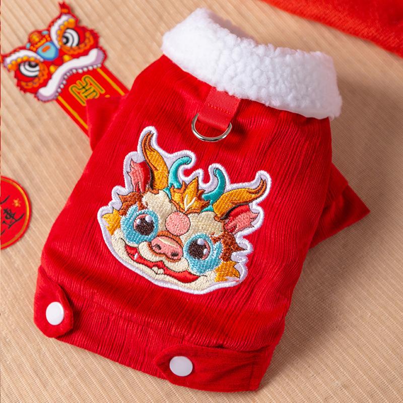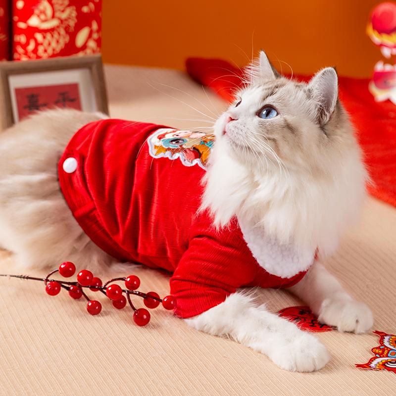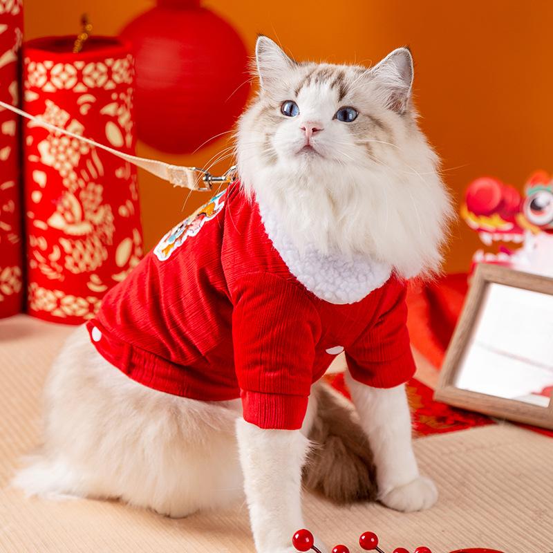 Осень и зима Новогодняя одежда для кошек утолщенная куртка из овечьей шерсти китайский Новый год праздничный год дракона взрослая кошка котенок новогодняя одежда для питомцев