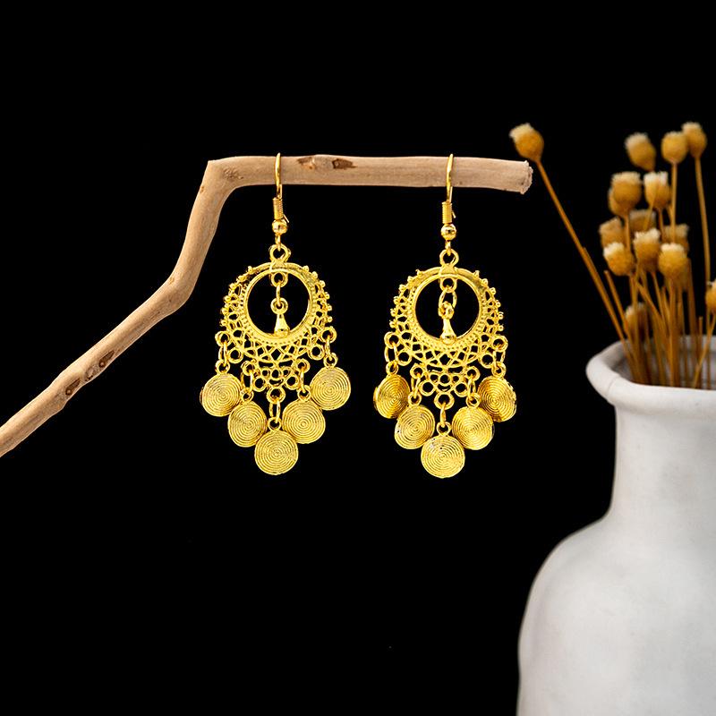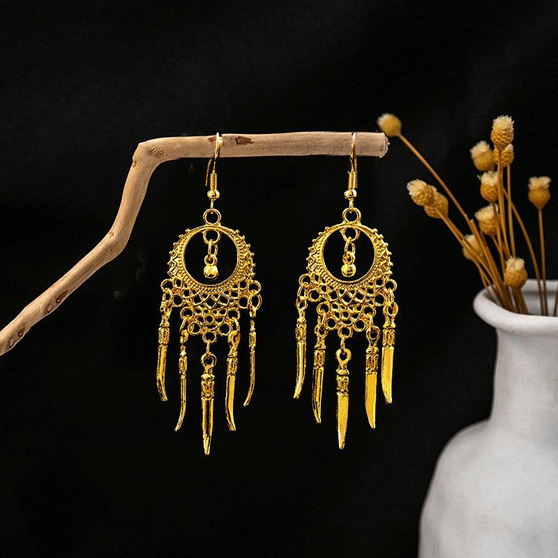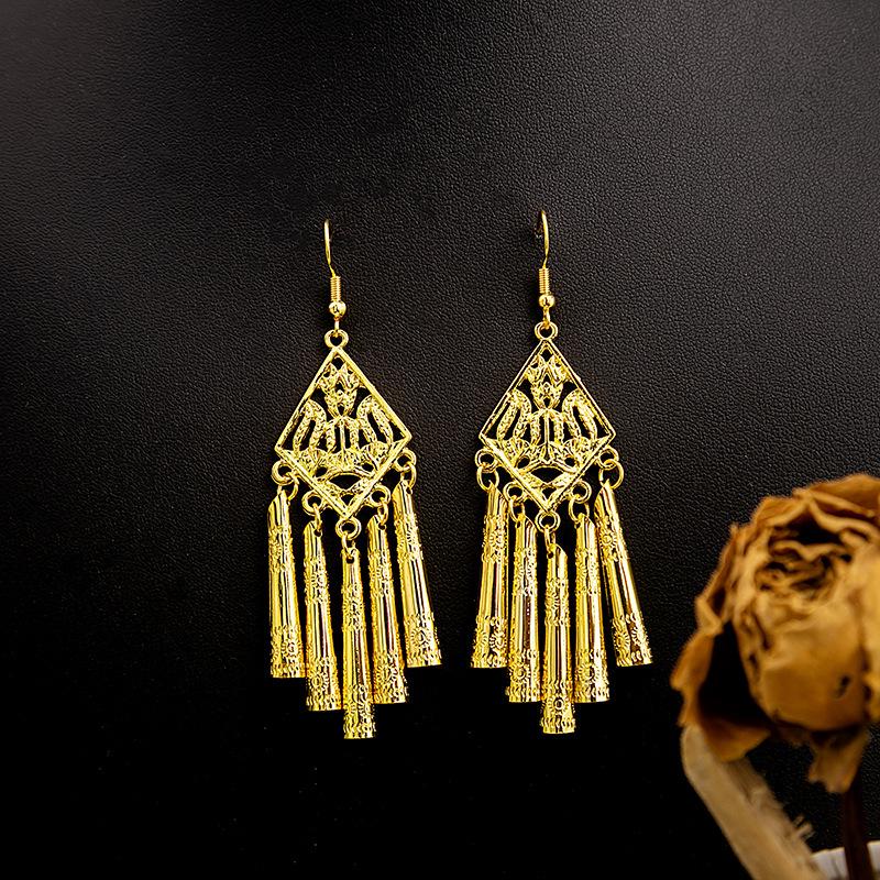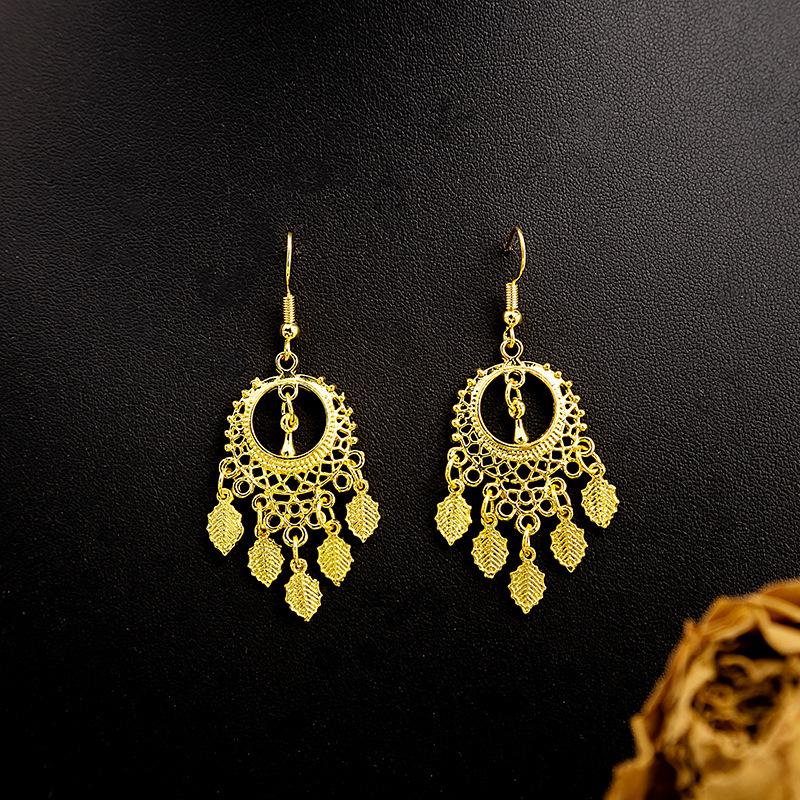 Богемные серьги с кисточками в виде листьев: Этнический дизайн с павлином и золотыми колокольчиками