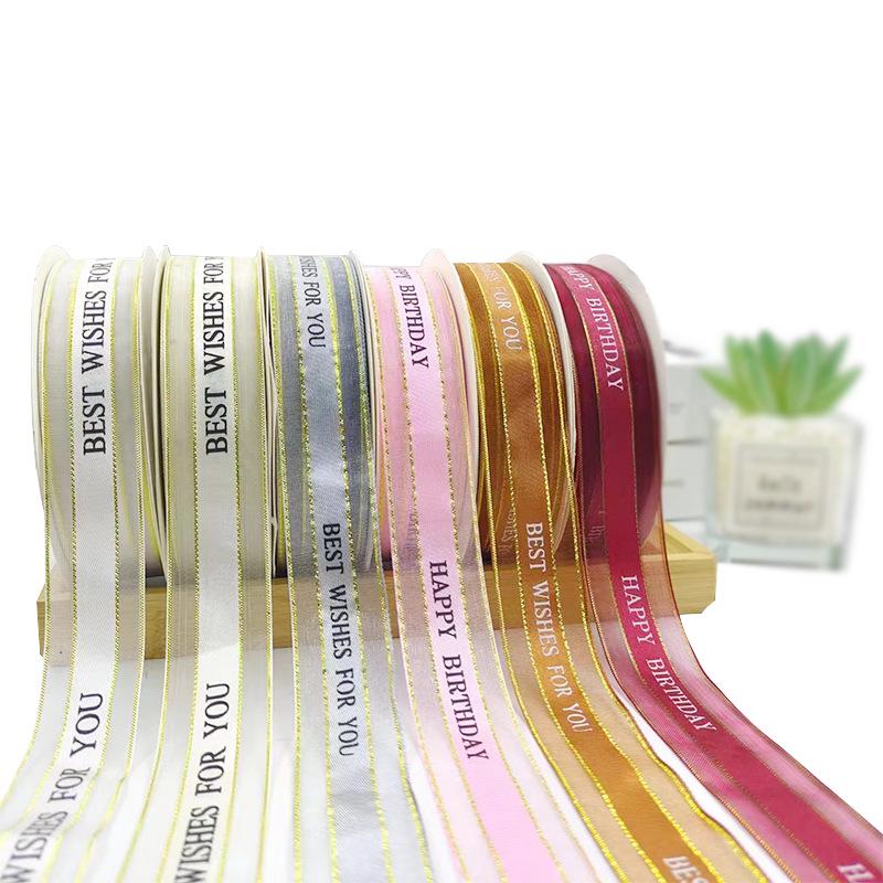 2,5 см Английская лента с золотым краем для украшения торта на день рождения и подарочной упаковки, декор для букета ручной работы
