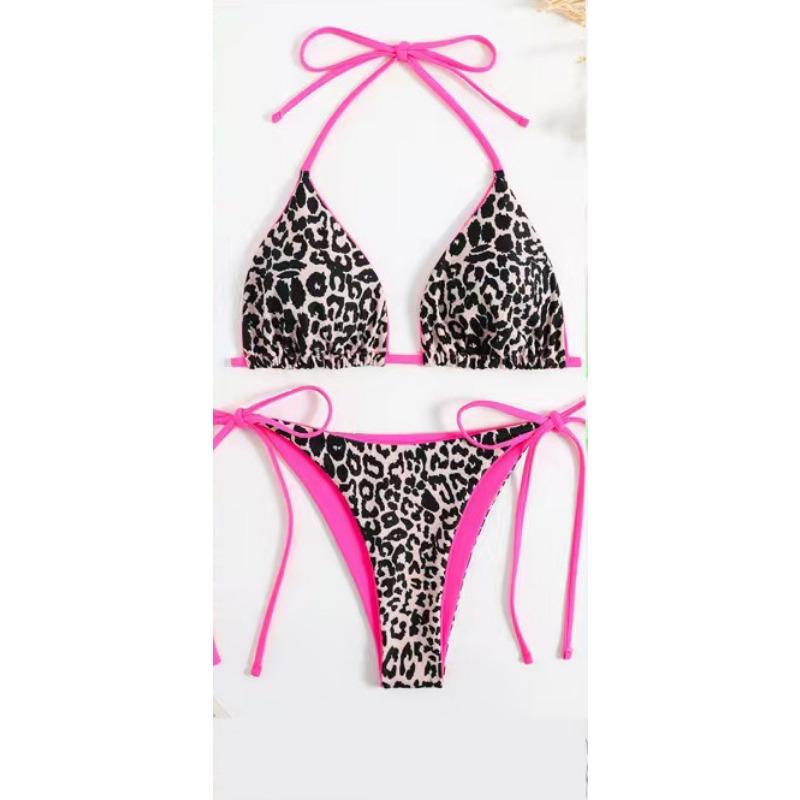 Новый женский раздельный купальник бикини с леопардовым принтом, сексуальный халтер, двусторонний, женский купальник