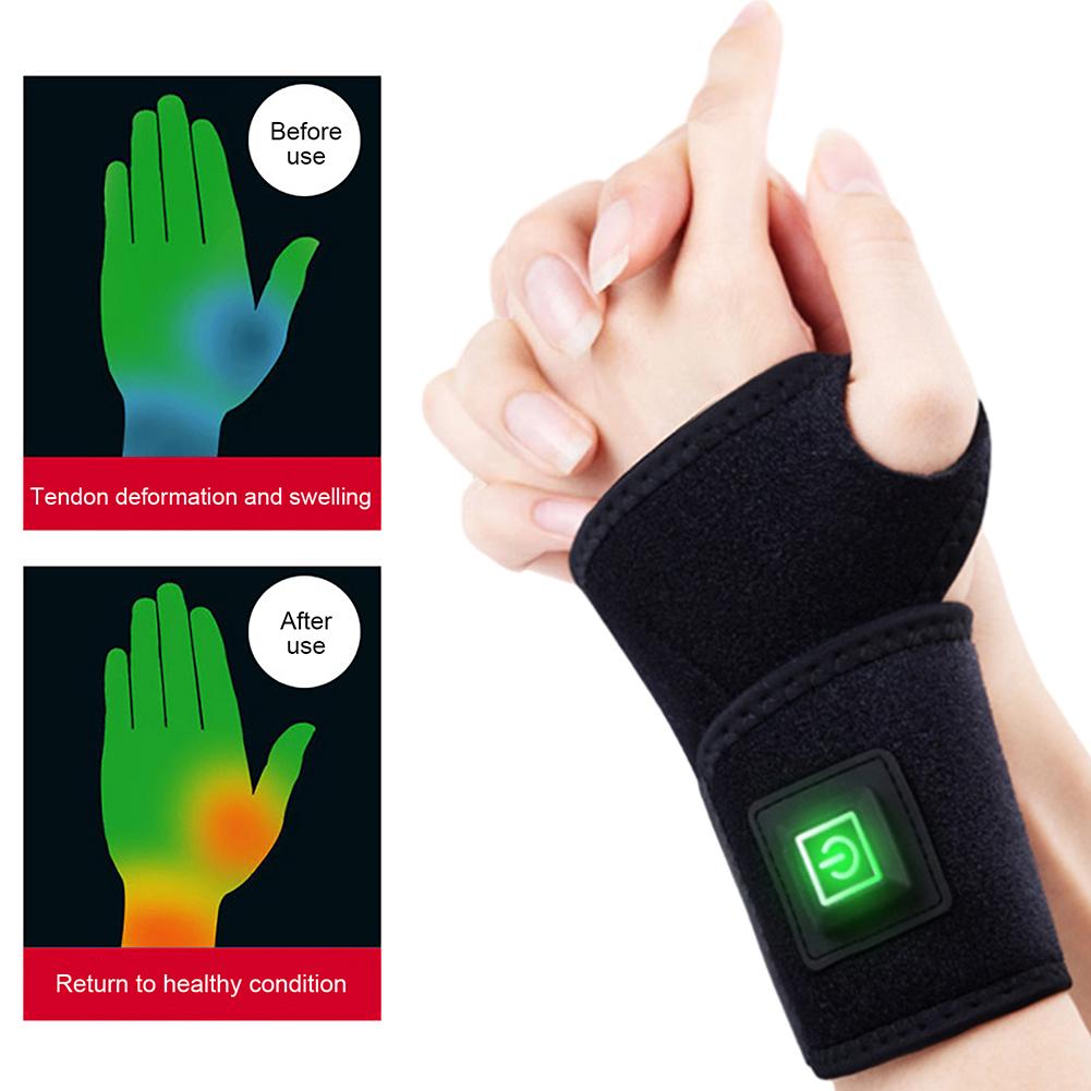 (черный)--Нагреваемый бандаж для поддержки запястьяЭлектрический нагреваемый бандаж для запястья Обертывание Облегчение боли Нагревательная подушка для запястья USB-зарядка 3 уровня температуры для травм Ревматизм Тендинит