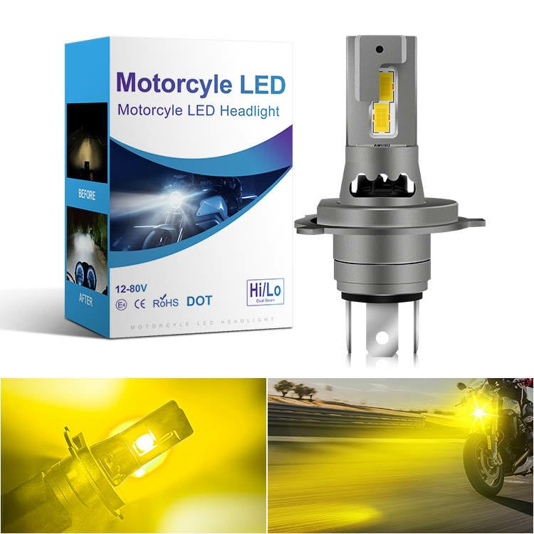 Супер яркая H4 LED Желтая мотоциклетная фара, Ярко-желтый, Лампа 12 В, Для