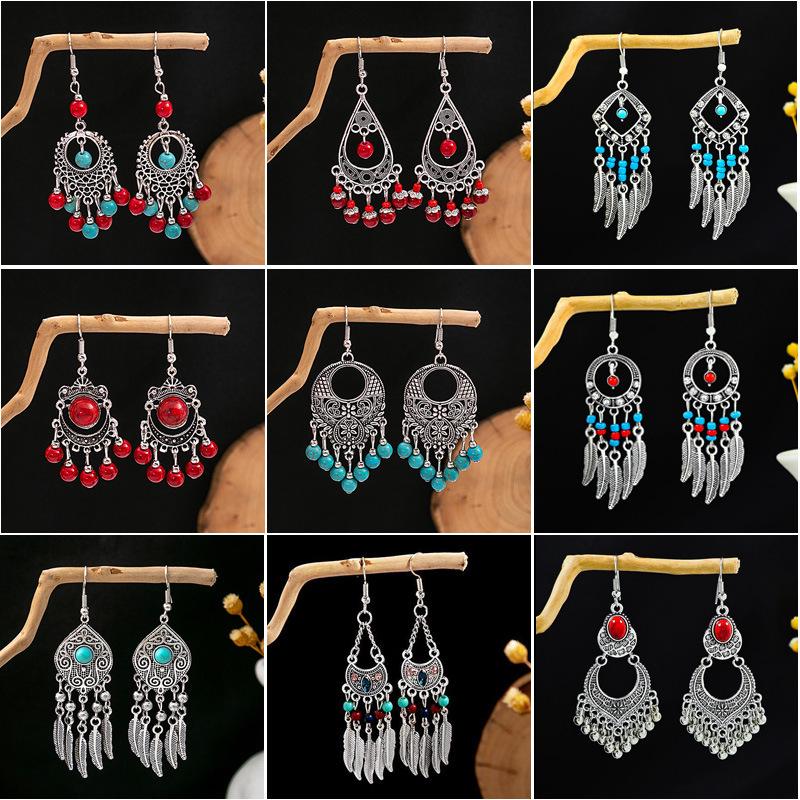 Ретро Этнические Богемные Серьги с Бирюзовой Кисточкой для Женщин