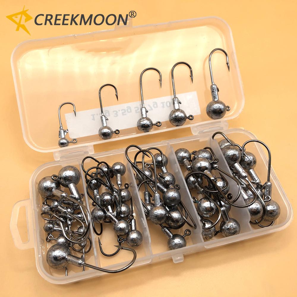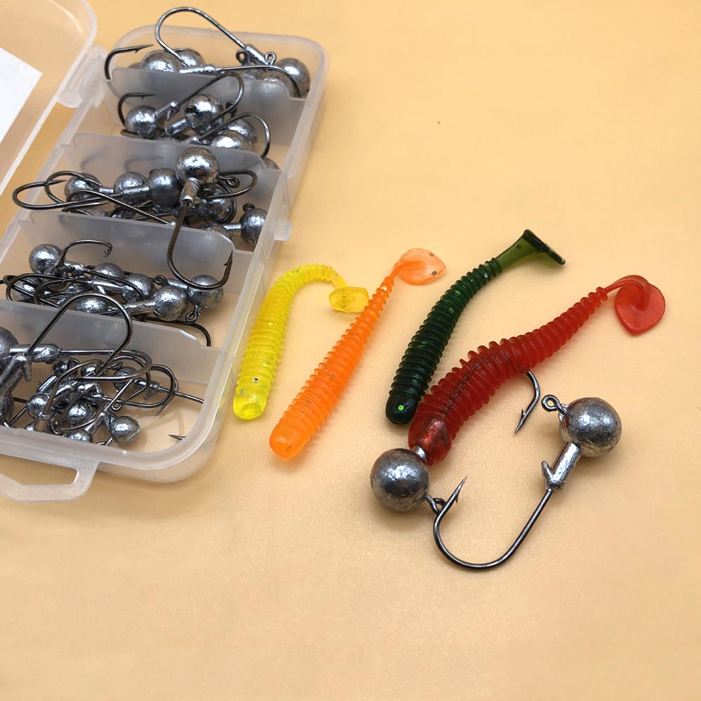 50 шт./набор Металлические джиг-головки Рыболовные крючки 1,5-10 г Смешанные Кованые Из высокоуглеродистой стали С бородкой Рыболовный крючок для мягкой приманки Крючок для джиггинга карпа