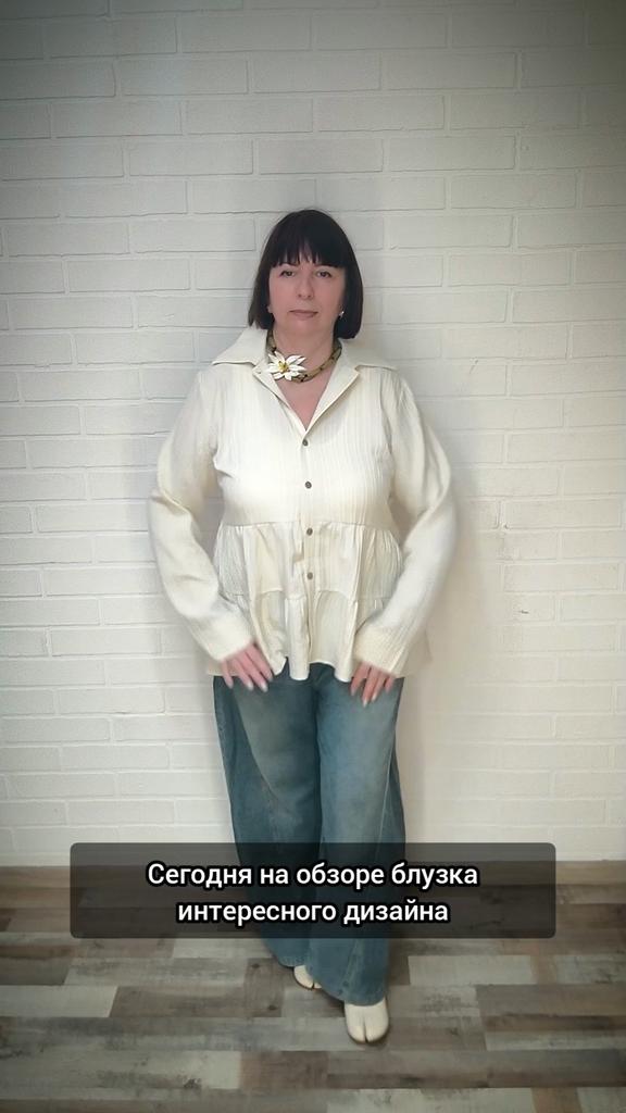 Блуза интересного дизайна Из магазина CANVAUS на Джум У продавца модель представлена в пяти цветовых решениях и размерной линейке до 3хл. Я выбрала блузку в цвете «абрикосовый» и в размере 3хл. Модель соответствует промо фото продавца. Материал приятный, с тиснением, по составу 100% полиэстер. Не электризуется, немного «светит». Отложной воротник. Пуговки под дерево. Рукавчик свободный, по нижнему краю на манжете, манжет застегивается на пуговку. Блузка А-силуэта, удлиненная, расширяется к низу изделия чуть присборенными ярусами. Садится на фигуру свободно. Есть вытачки. Пошив качественный. Замеры изделия в размере 3хл: Обхват груди 120см Обхват талии 116см Плечи 44см Длина рукава 67см Обхват манжета по краю рукава 26см Длина изделия 70см На мои параметры 104-94-114/170 блузка села свободно, в носке очень комфортная. Подойдет и на рост выше. Длина рукава отличная. Однозначно рекомендую. Видео можно посмотреть в обзоре. Приятных вам покупок, дорогие мои ❤ Всем добра))) Ваша OptiMist_i_ka #джум #блузка #рекомендую #OptiMist_i_ka
