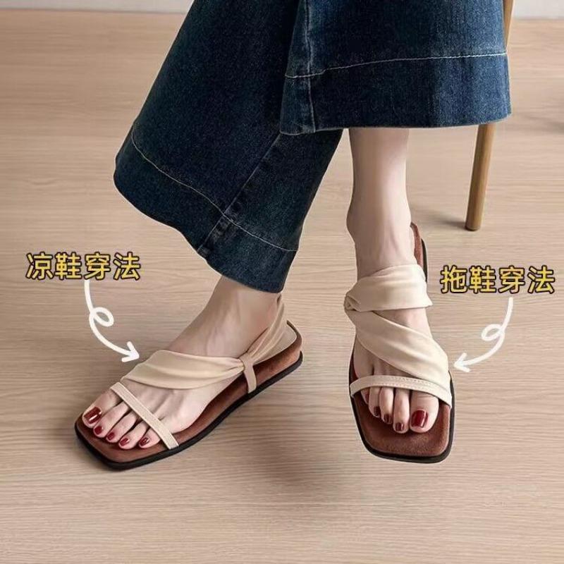 Not tired feet~ Temperament with skirt two wear one word with sandals new thick-soled square head sandals women