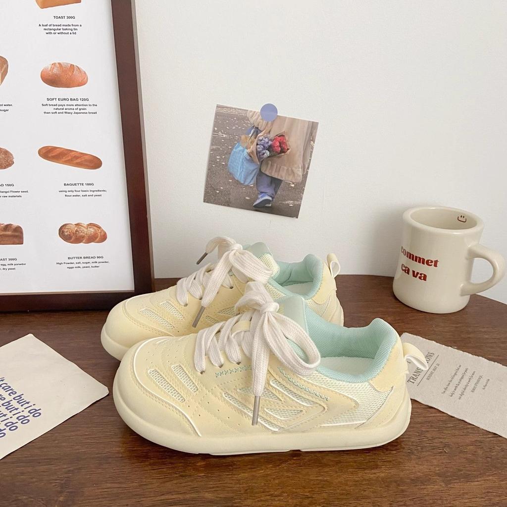 Spring ugly cute thick-soled women's double net breathable soft elastic student versatile sports little white shoes