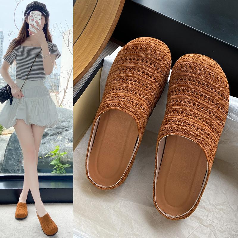 Нишевые плетеные вручную полые дышащие тапочки для головы женские летние в иностранном стиле на толстой подошве
