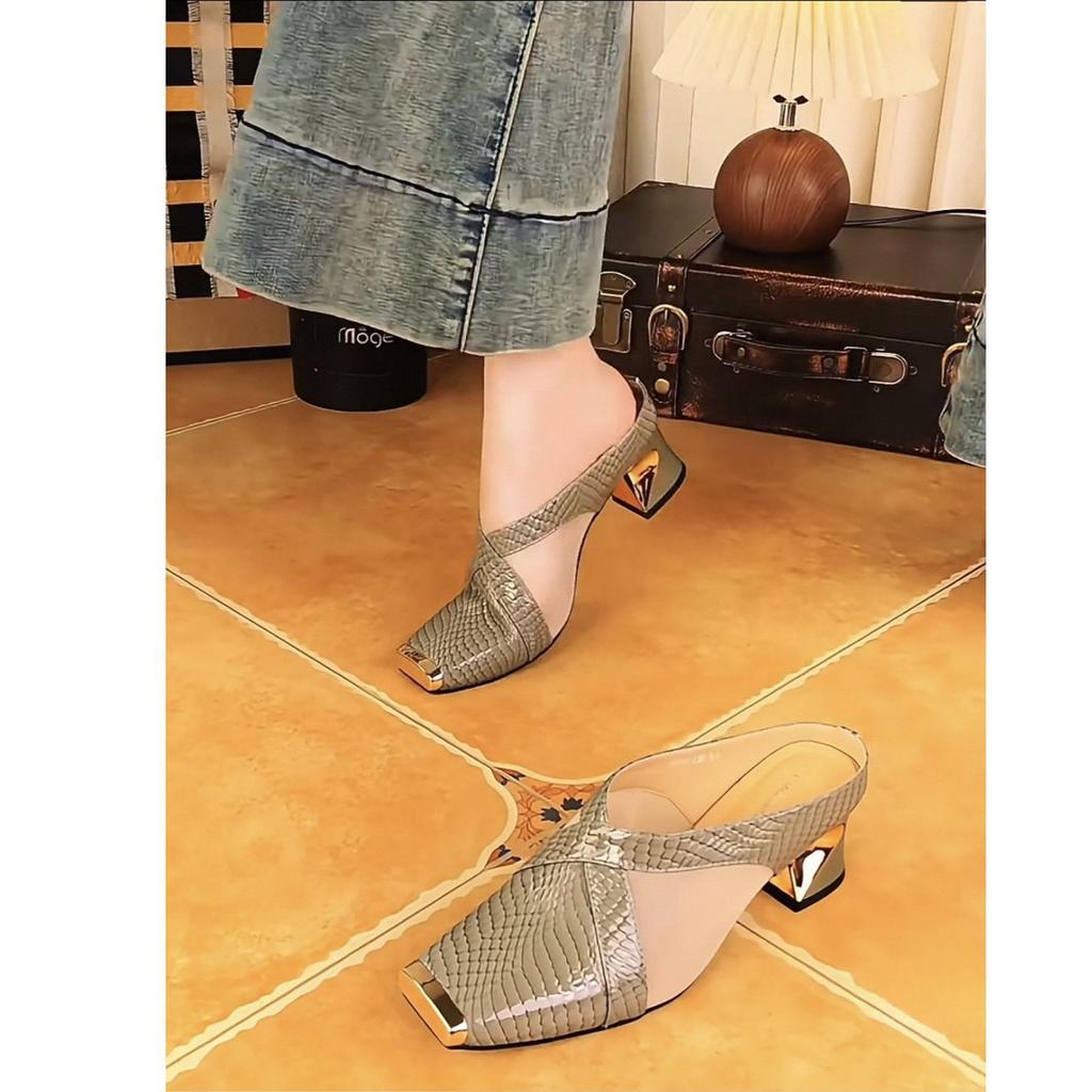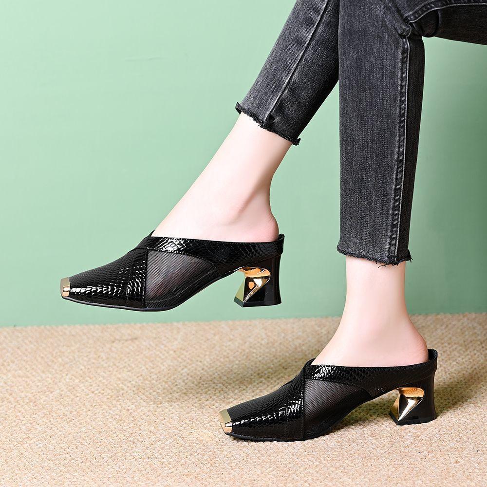 Баотоу полушлепанцы женские летние новые модные сандалии женские железный носок толстый каблук удобные квадратный носок сандалии женские