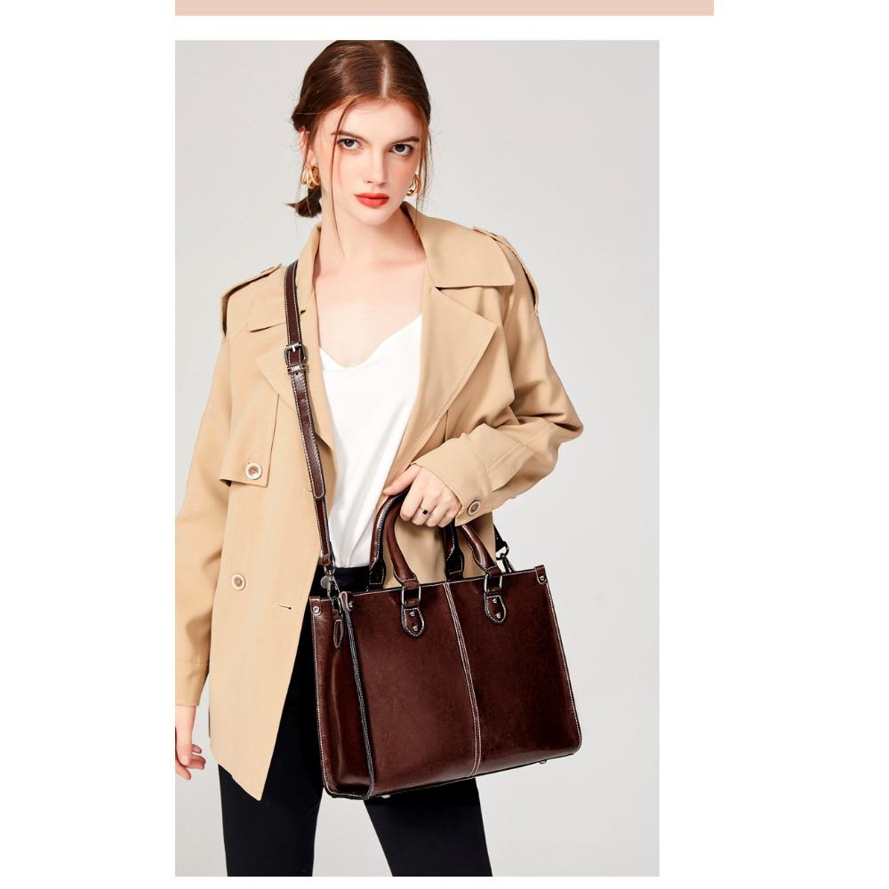 Женская сумка из натуральной кожи с отделкой масляным воском, женская сумка в европейском и американском стиле, из коровьей кожи, универсальная, портативная, на плечо, мессенджер