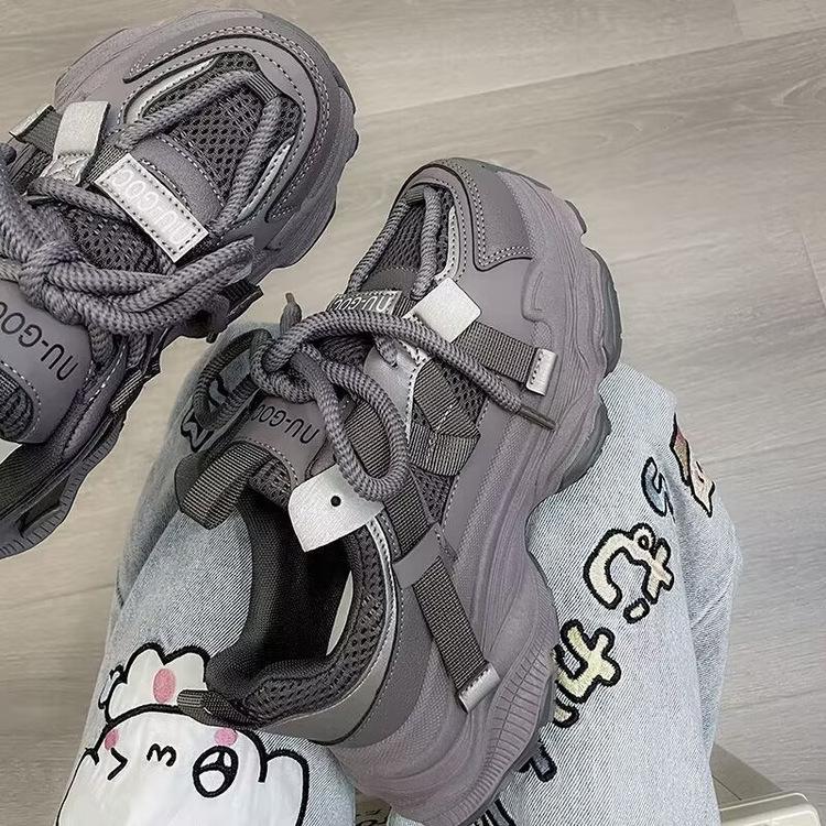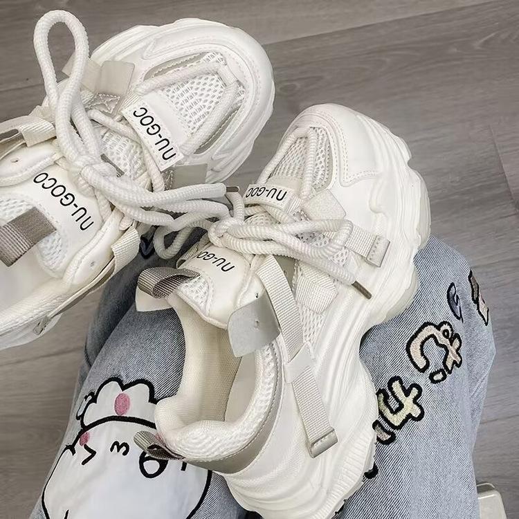 Черно-белые кроссовки на толстой подошве, увеличивающие рост, осенние, передовые, дышащие, повседневные, универсальные, грязеотталкивающие спортивные туфли для женщин