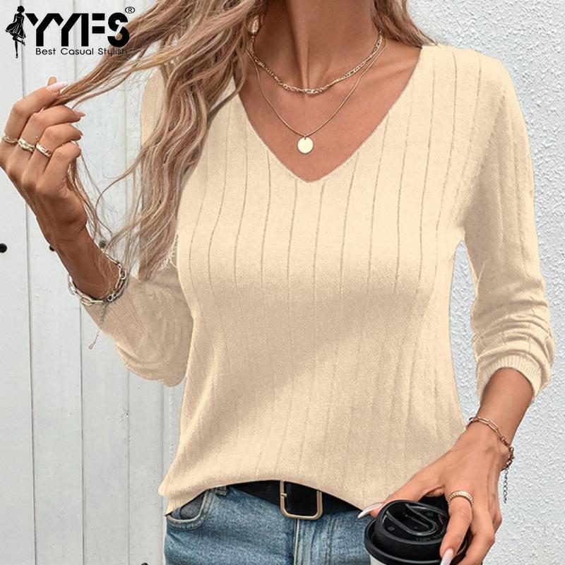 YYFS Женская мода повседневная осень-зима однотонный принт длинный рукав V-образный вырез свитера
