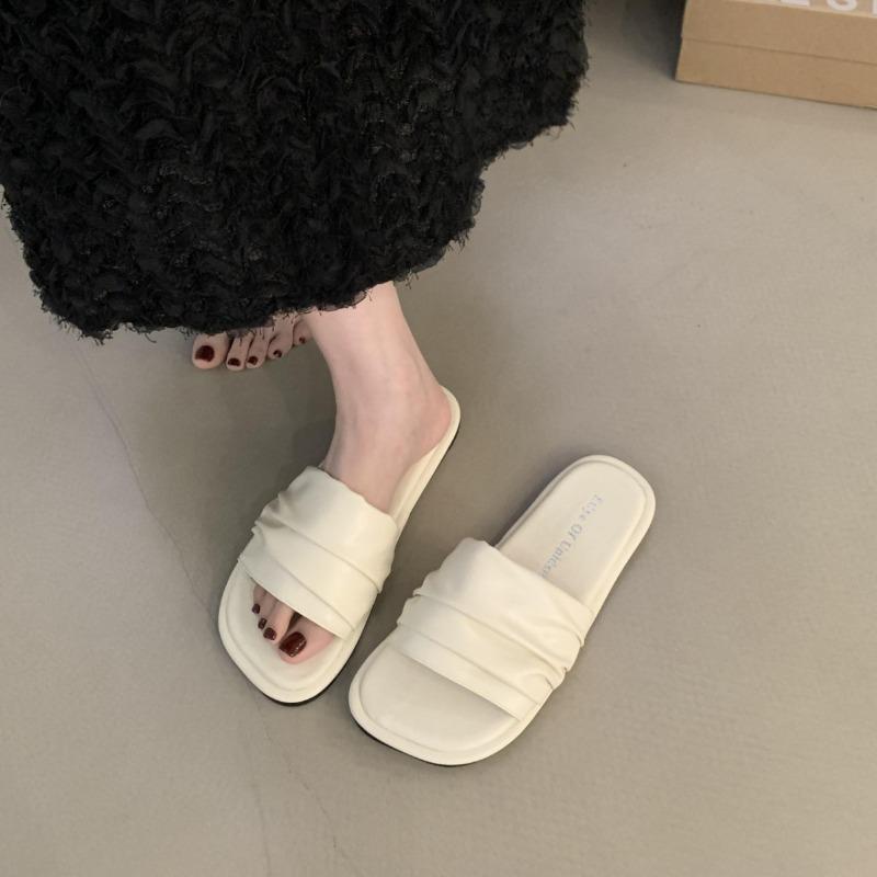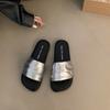 Silver flat-soled one-word drag shoes women's shoes wear new summer soft-soled beach sandals