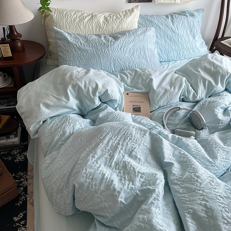 Набор из 4 предметов из облачного хлопка в полоску Однотонная простыня Наматрасник Пододеяльник Набор из 3 предметов — купить товар онлайн с бесплатной доставкой по всему миру!