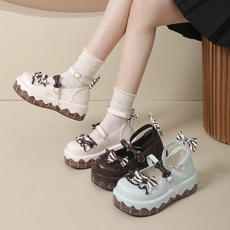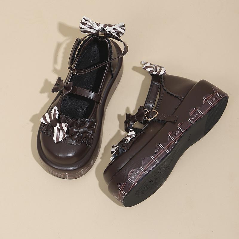 Туфли Мэри Джейн на толстой подошве, милые, в стиле Лолиты, с круглым носком и бантом, женские универсальные маленькие кожаные туфли