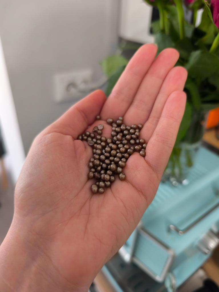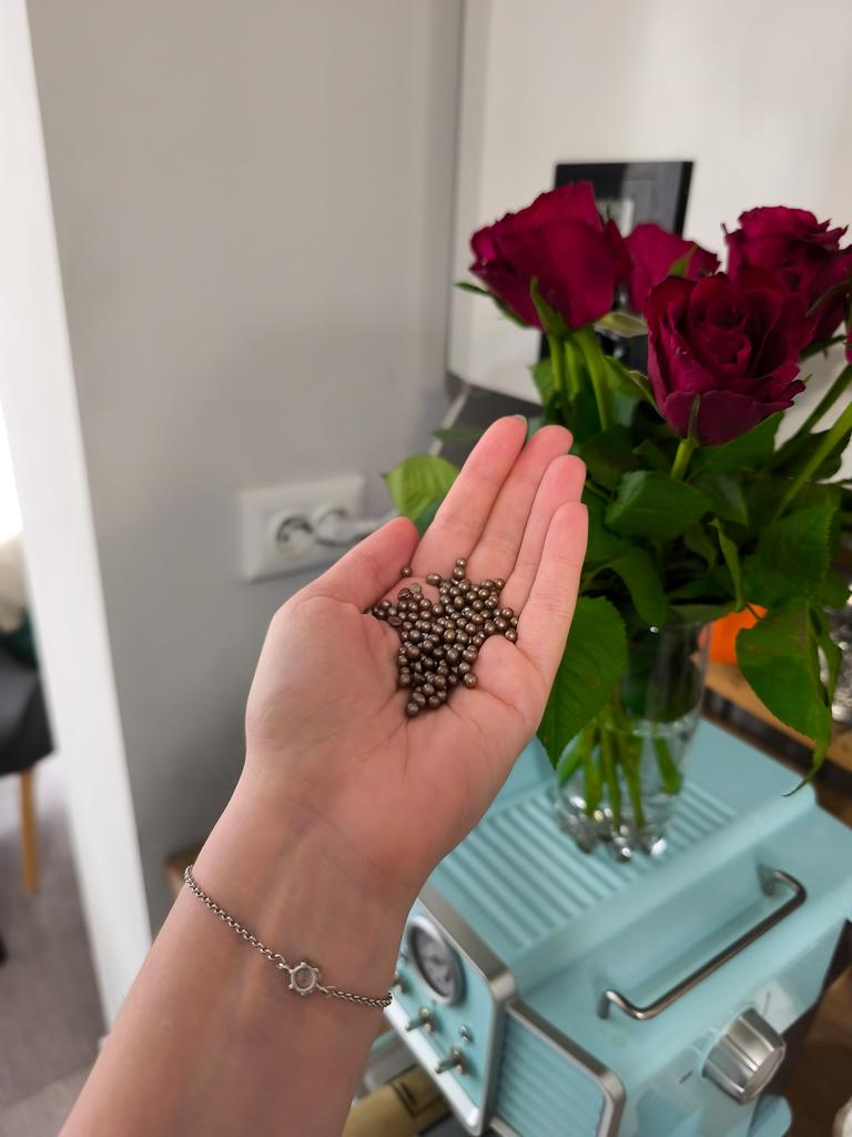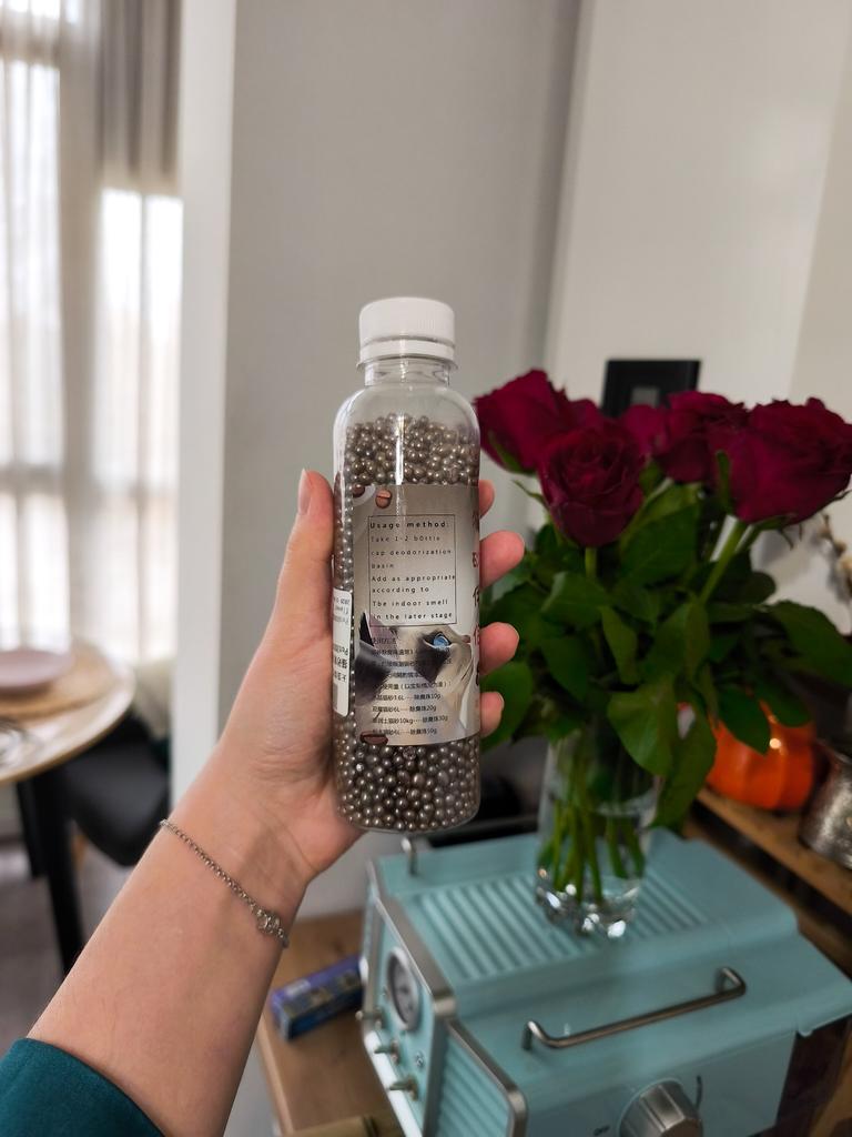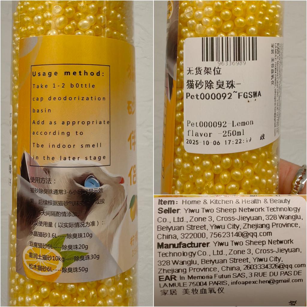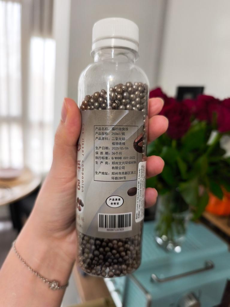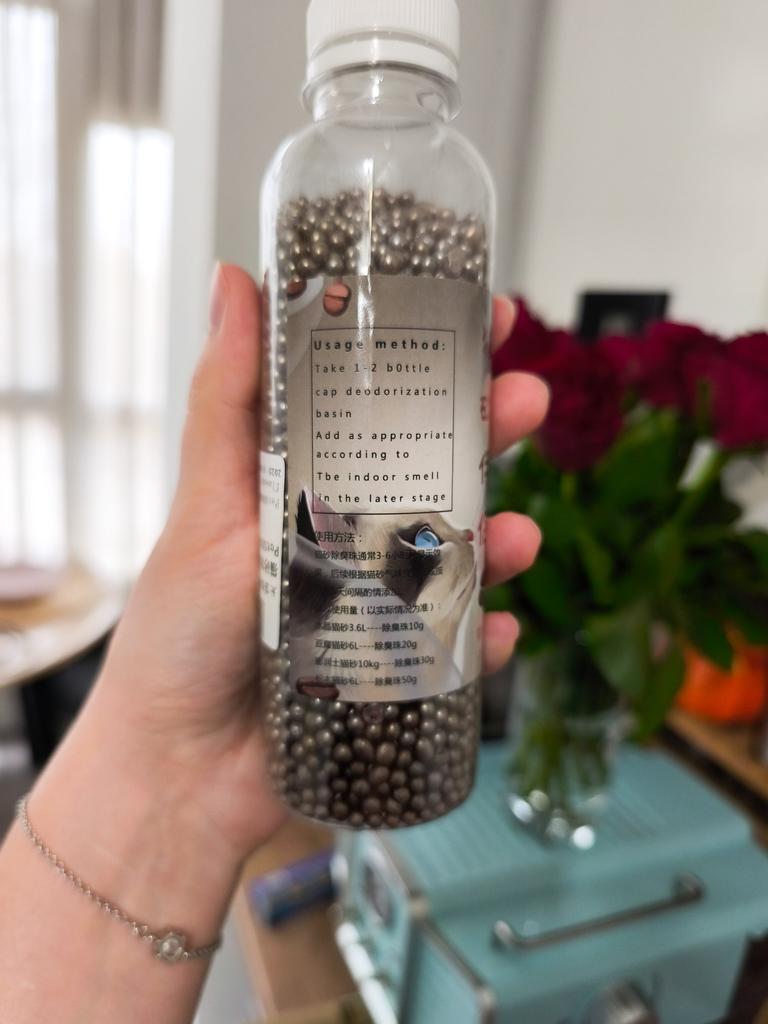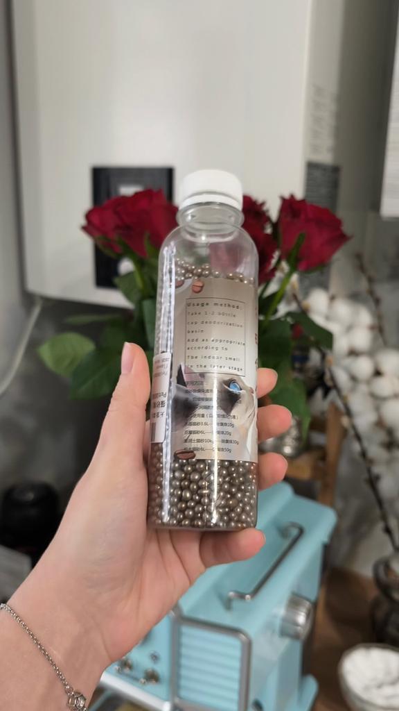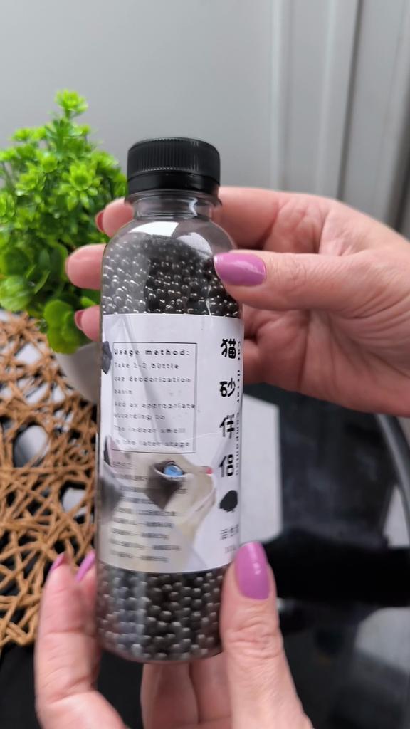 ✨ Обзор дезодорирующих гранул Это специальные гранулы-дезодораторы для использования в кошачьем туалете, предназначенные для устранения неприятных запахов. * Назначение: Дезодорация (устранение запахов) в кошачьем лотке. * Внешний вид: Гранулы имеют форму маленьких, круглых шариков бронзового цвета. * Метод использования (по инструкции): * Насыпьте 1–2 крышки гранул в лоток (дезодорирующий отсек или непосредственно в наполнитель). * Добавляйте по мере необходимости, в зависимости от запаха в помещении, особенно на поздних стадиях использования наполнителя. * Преимущество: Добавление этих шариков к обычному наполнителю продлевает срок его службы и помогает поддерживать свежесть в доме, нейтрализуя аммиачные и другие запахи. Рекомендую 👍 Ставлю ⭐ ⭐ ⭐ ⭐ ⭐ Спасибо продавцу ❤️ и Joom ❤️