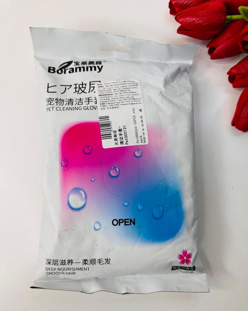 Одноразовые перчатки для быстрой чистки животных! ✔️Пахнут хорошо а самое главное не вызывают аллергии. ✔️Я почистила шерсть и коту и собакену все отлично пахнут хорошо. ✔️Отличный способ быстро освежить четвероногих без воды и шампуни. ✔️В упаковке 10 шт. ✔️У продавца в наличии есть широкий ассортимент продукции для друзей наших меньших. ✈️Посылка шла около двух недель до Молдовы, Кишинёв. 📌Посылка была упаковано хорошо. 📌Товар без брака. 📌Дизайн красивый. 📌Качество хорошее. 😍Рекомендую и ещё раз рекомендую к покупке!!!