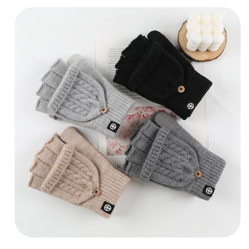 Вязаные перчатки для женщин с откидной варежкой, милые шерстяные перчатки двойного назначения, зимние теплые перчатки без пальцев с прорезями для пальцев, перчатки из кроличьего меха — купить товар онлайн с бесплатной доставкой по всему миру!