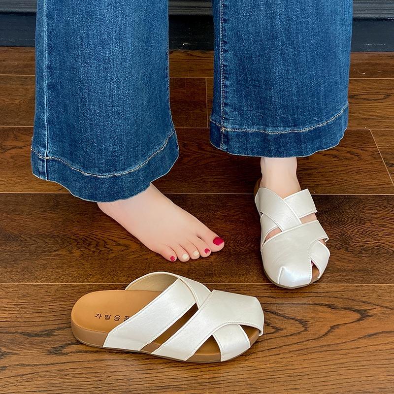 Half slippers women's summer wear new one-pedal pregnant women's single shoes soft-soled bag head sandals