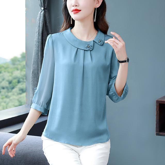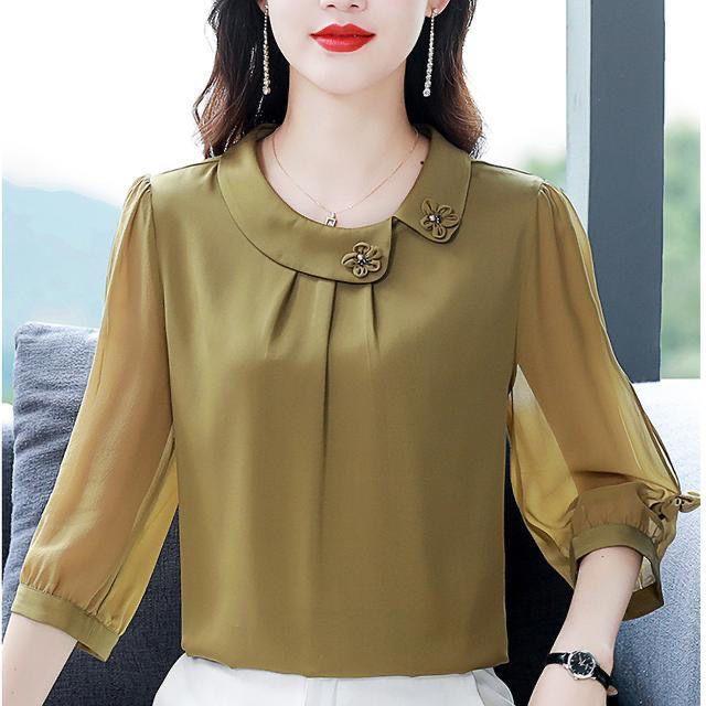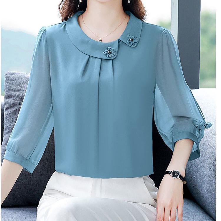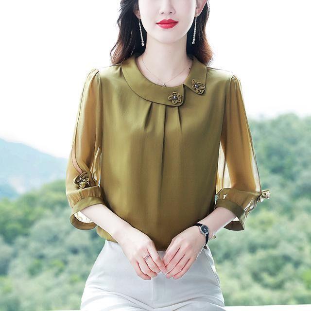 Весна Лето Осень Женская Тонкая Секция Однотонная Семиминутный Рукав Шифоновая Тонкая Секция Рубашка Свободная Тонкая Прикрывающая Живот Темпераментная Рубашка