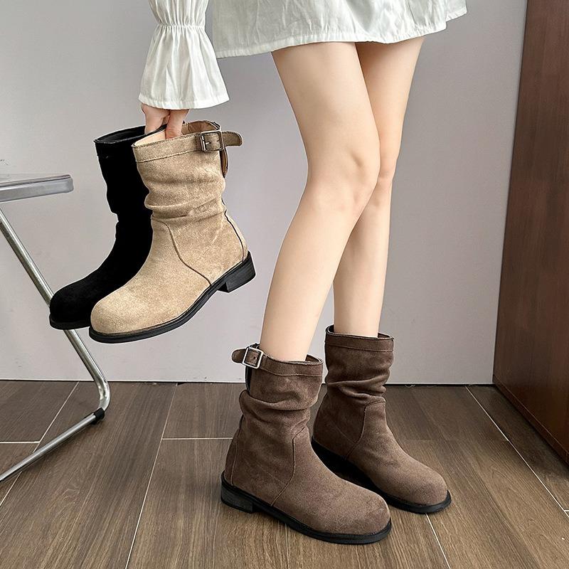 Ретро простые и тонкие ботинки Мартина для женской новой осени и зимы, нишевые универсальные плиссированные короткие ботинки на низком каблуке с присборенным голенищем для женщин