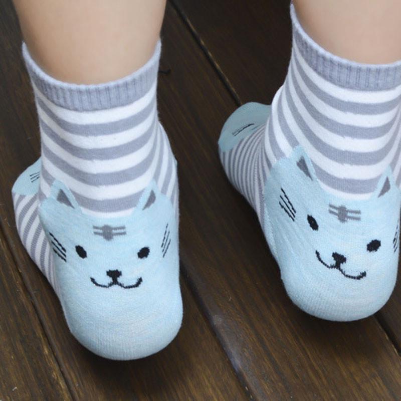 Полосатые мультяшные носки с 3D животными, женские кошачьи следы, хлопковые носки, напольные