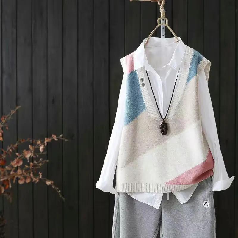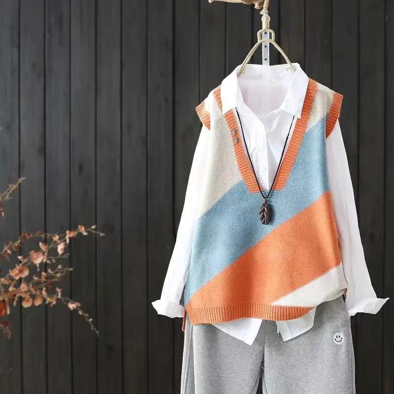 Весенне-осенний женский вязаный жилет, майка, свободный свитер, женское пальто, вязаная футболка с головой, искусство, женская одежда