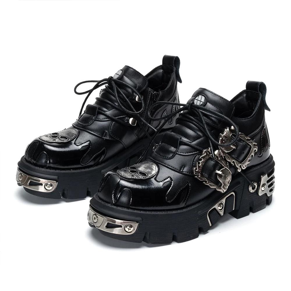 Мужские и женские винтажные рок-парные туфли, новые темные панковские кожаные ретро-ботинки, металлический нишевый дизайн, унисекс, туфли на одной платформе
