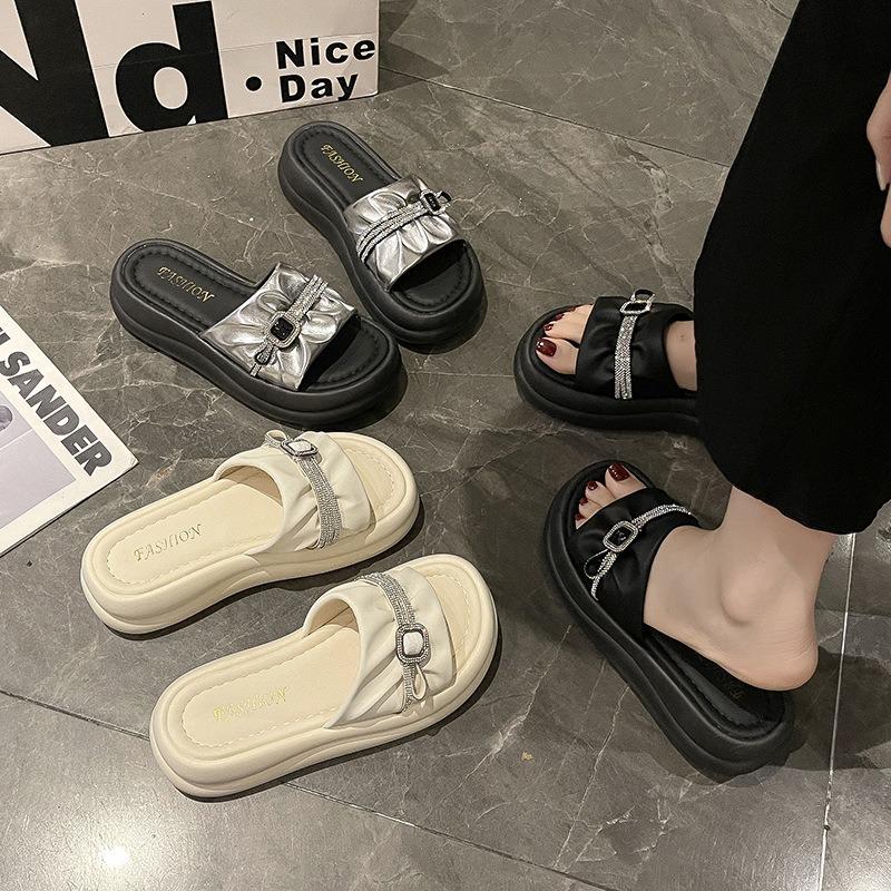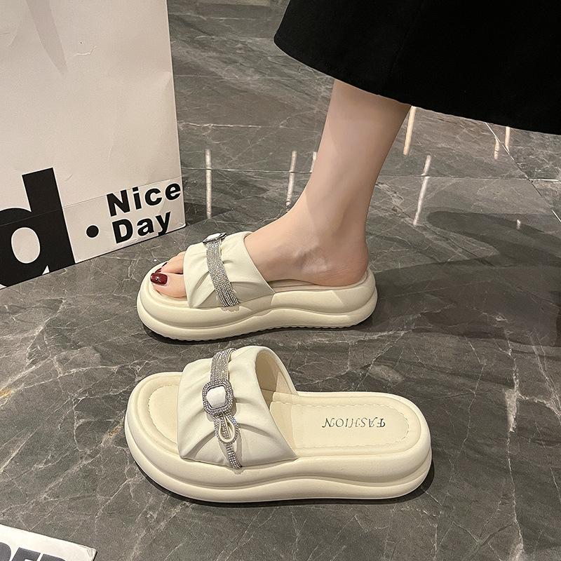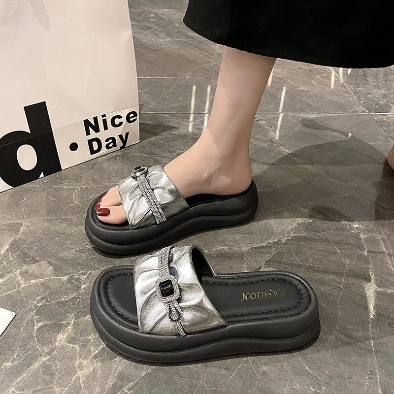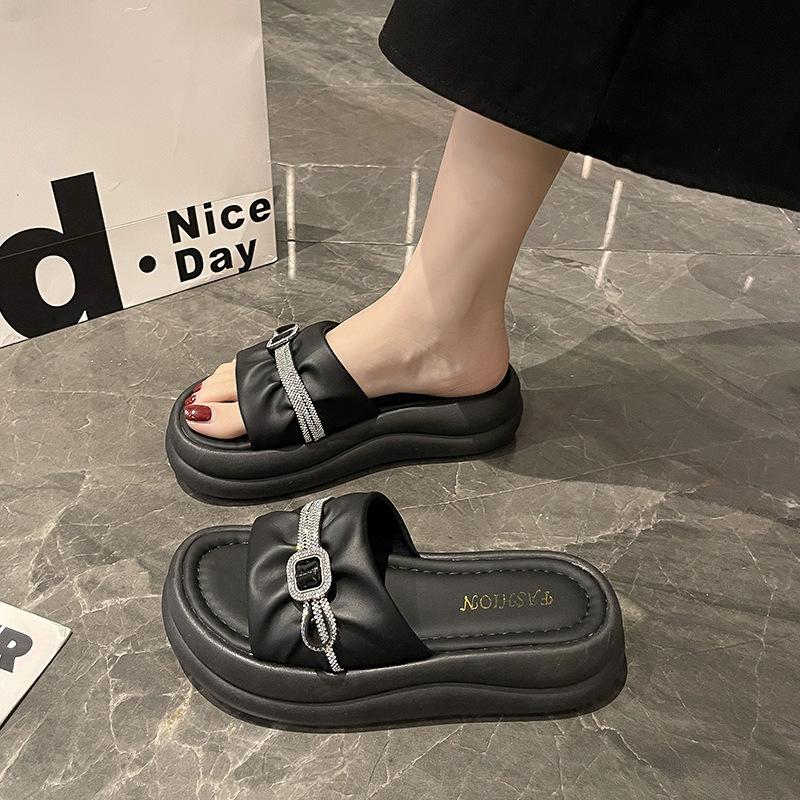 Высококачественные шлепанцы на толстой подошве для женской уличной обуви, весна и лето, новые, нескользящие, увеличивающие рост, модные, маффин, шлепанцы на одном ремешке