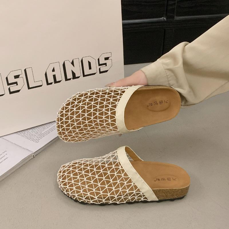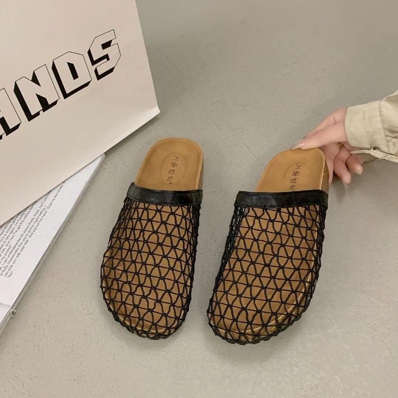 Полые плетеные полутапочки женские летние новые сетчатые сандалии сетка-рабица дышащие с закрытым носком сандалии