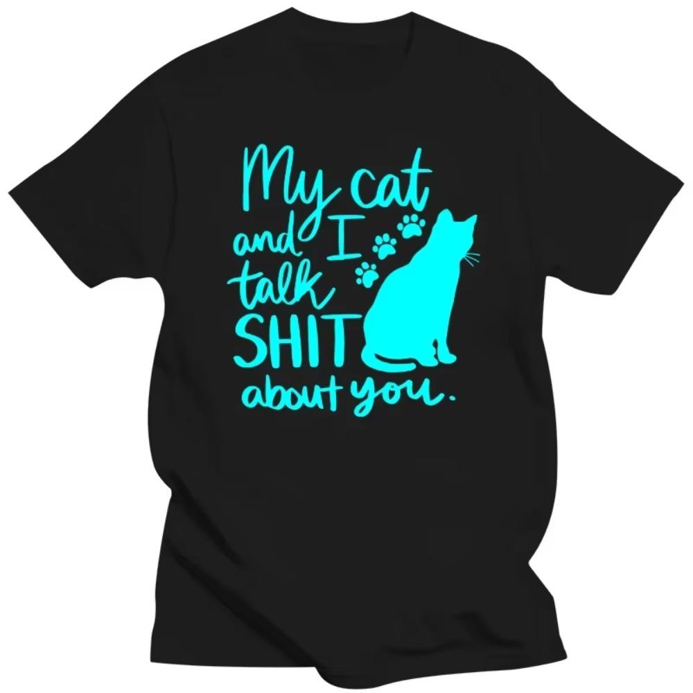 Мужская футболка Мой кот и я говорим о тебе всякую хрень Кавайная футболка Мужская Женская футболка Светящиеся футболки с графикой котят Футболки Харадзюку