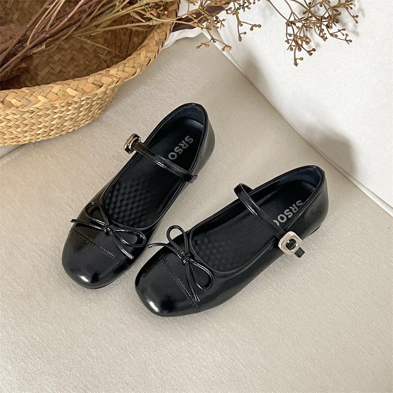 Туфли-лодочки с круглым носком на плоской подошве женские летние новые универсальные маленькие кожаные туфли с мелким вырезом Мэри Джейн юбка