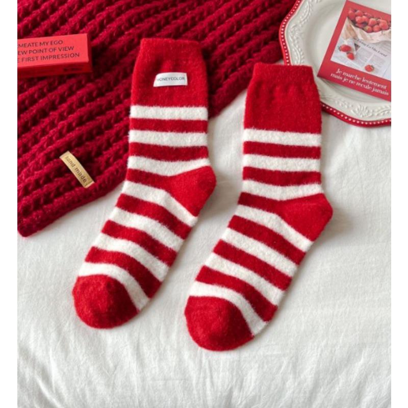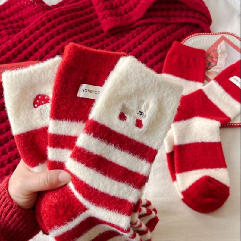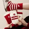 Женские зимние бархатные утолщенные теплые в этом году вышитые носки для сна цвета грибного красного