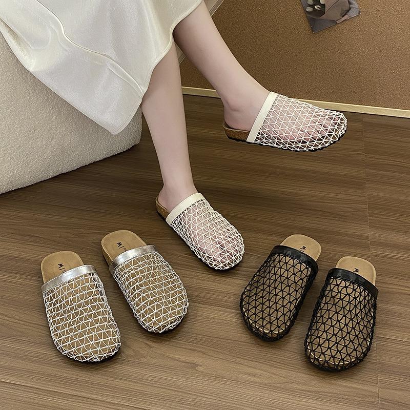 Полые плетеные полутапочки женские летние новые сетчатые сандалии сетка-рабица дышащие с закрытым носком сандалии