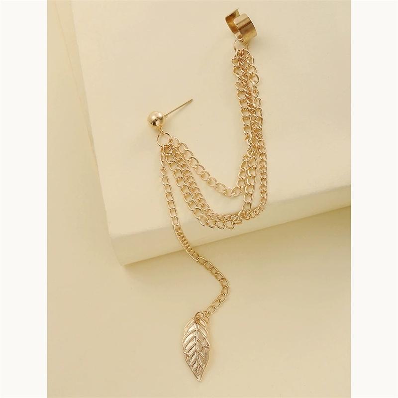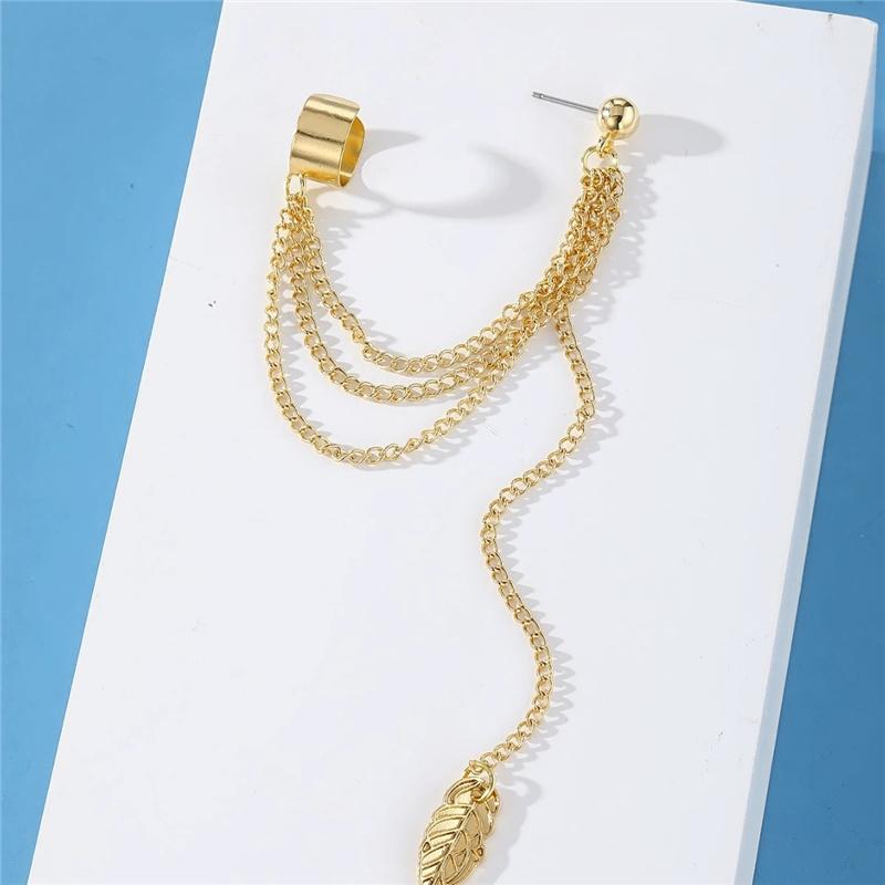 Креативные минималистичные серьги-подвески с цепочкой в виде листьев и металлическими кисточками, серьги-клипсы для женщин, ювелирные изделия