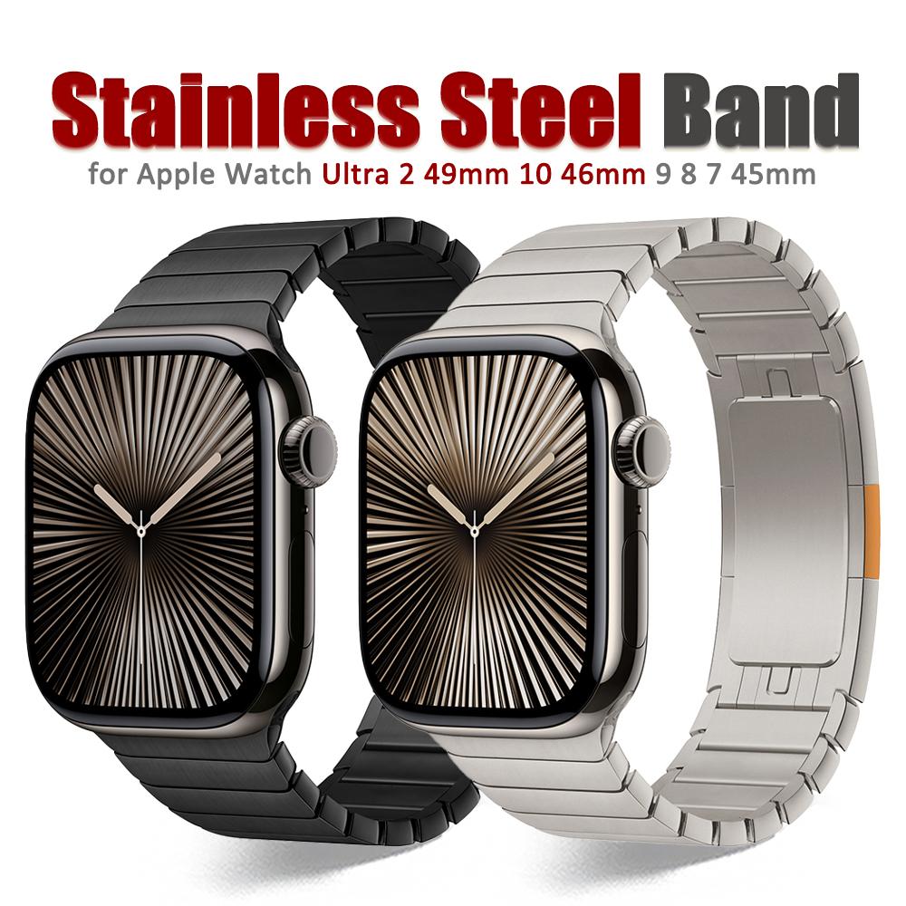 Браслет цвета титана для Apple Watch Ultra 2 49 мм 10 46 мм Роскошный ремешок из нержавеющей стали для IWatch 9 8 7 6 5 4 SE 45 мм 44 Ремешок