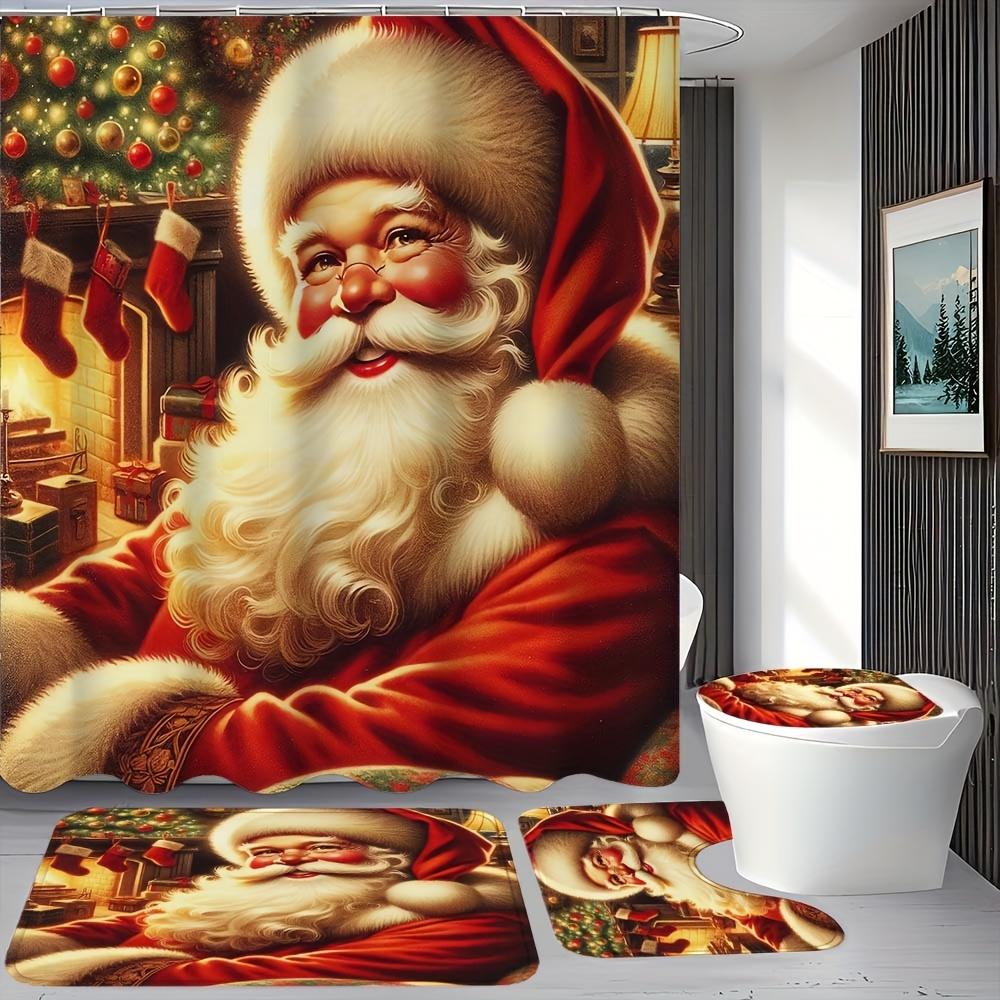 Набор из 4 предметов для ванной комнаты: шторка для душа с Санта-Клаусом, занавеска для ванной с 12 крючками, нескользящие коврики, коврик для крышки унитаза, перегородка для ванной