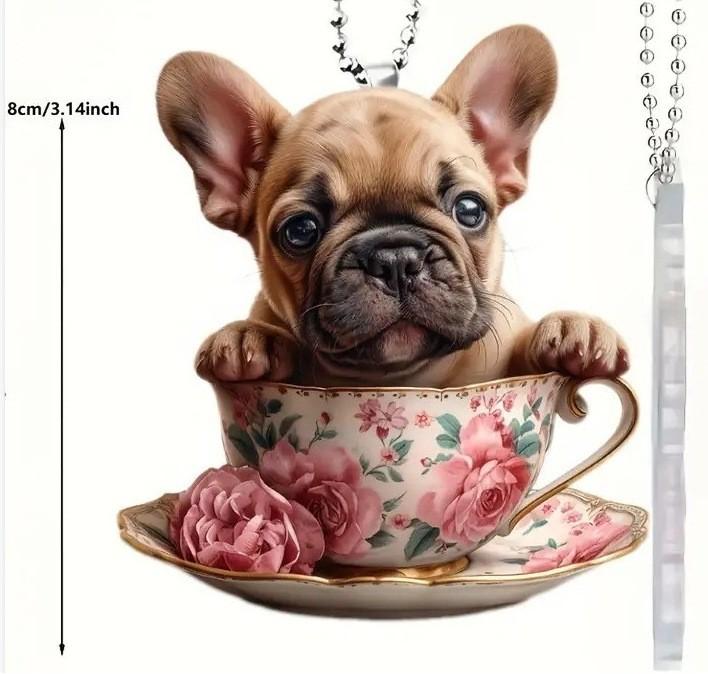 Акриловый Креативный Мультяшный Плоский Пес Чайная Чашка Автомобильный Подвесной Орнамент для Украшения Интерьера