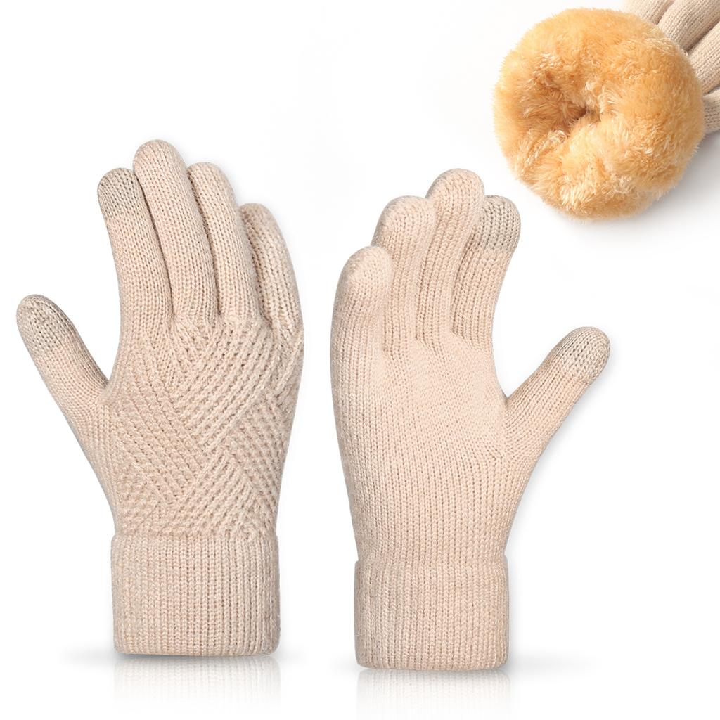 Теплые вязаные перчатки для женщин для зимней езды на велосипеде, офиса, простые, ветрозащитные, двухслойные, с сенсорным экраном