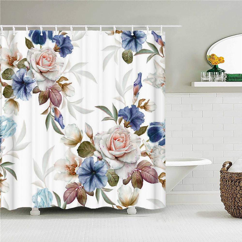 Красочные Красивые Цветы Занавеска для Ванной Водонепроницаемая Ткань Шторки для Душа Цветочный Принт Розы Декор Экрана для Ванной Комнаты с Крючками