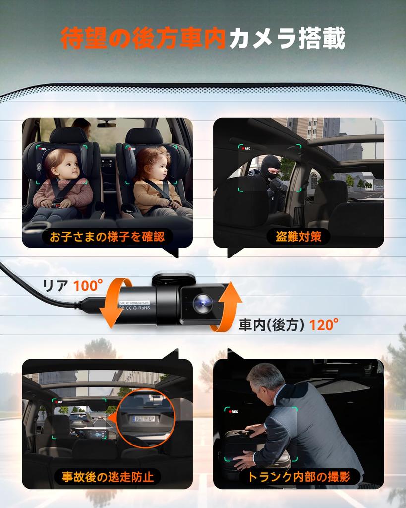 [Задняя салонная камера — это ключ! Записывает боковые столкновения, кражи и безопасность детей] Этот видеорегистратор снимает кадры задней части салона, которые обычные видеорегистраторы с передней и задней камерами не могли зафиксировать. Две передняя и задняя внутренние камеры делают пинцетный снимок, позволяя вам фиксировать боковые столкновения, скрытые стойками во время движения, благодаря параллаксу между двумя камерами.. Он также записывает удары по дверям, столкновения, вандализм и взломы автомобилей в высококачественной широкоугольной записи, которую предыдущие видеорегистраторы не могли зафиксировать.. Этот видеорегистратор с четырьмя камерами сочетает в себе безопасность и защиту в одном, обеспечивая защиту следующего поколения на 360 градусов, со всех сторон.