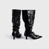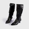 Остроносая металлическая пряжка высокие сапоги на каблуке ретро маленьком каблуке модные сапоги Spice girl длинные сапоги женские