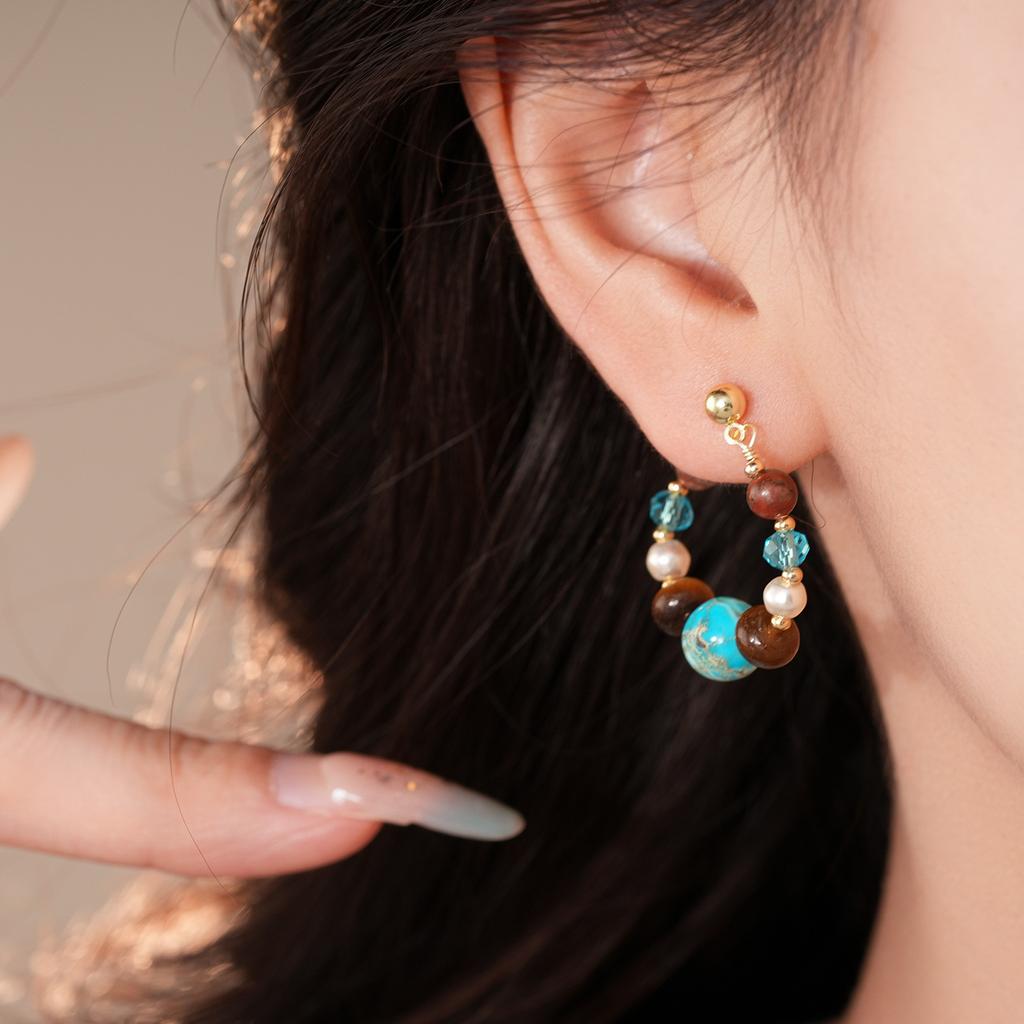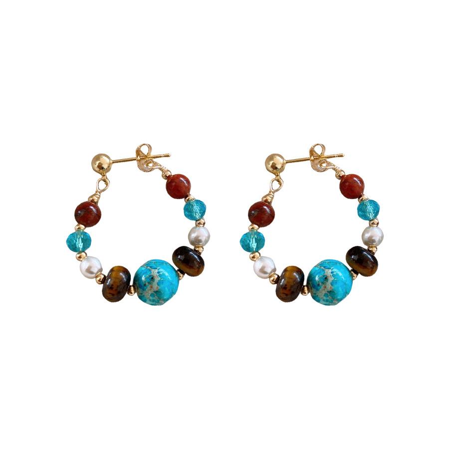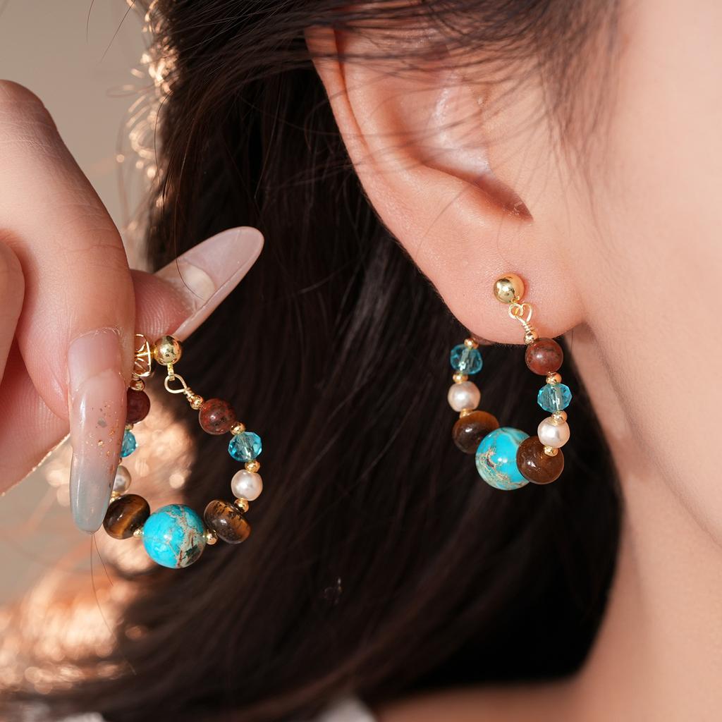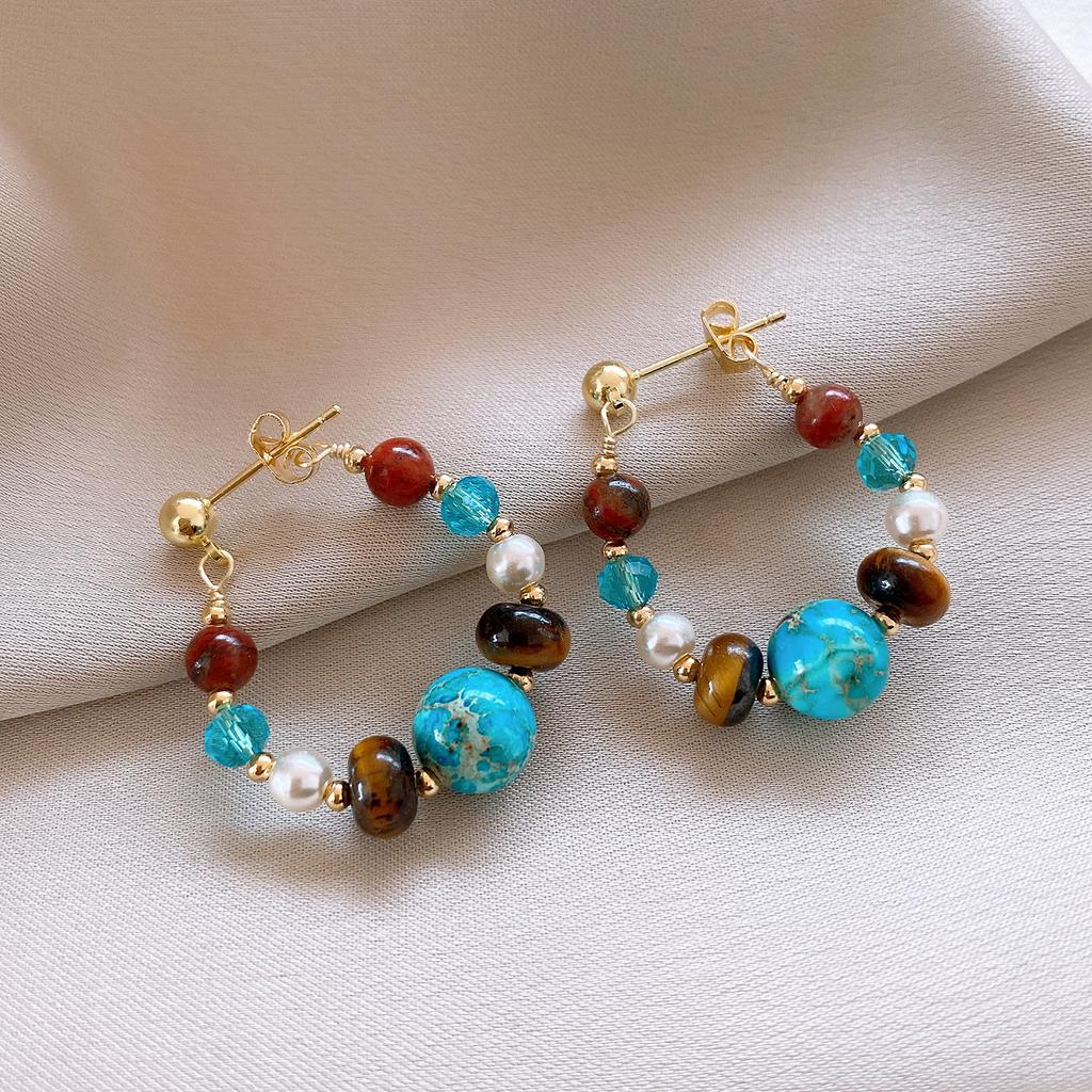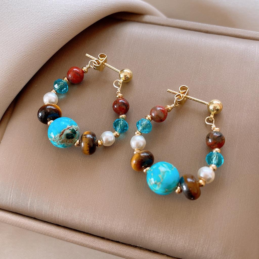 Этнические серьги из искусственной бирюзы в стиле капли воды, текстурированные, с бусинами, серьги-капли, аксессуар для ушей, ювелирное украшение, камень неправильной формы
