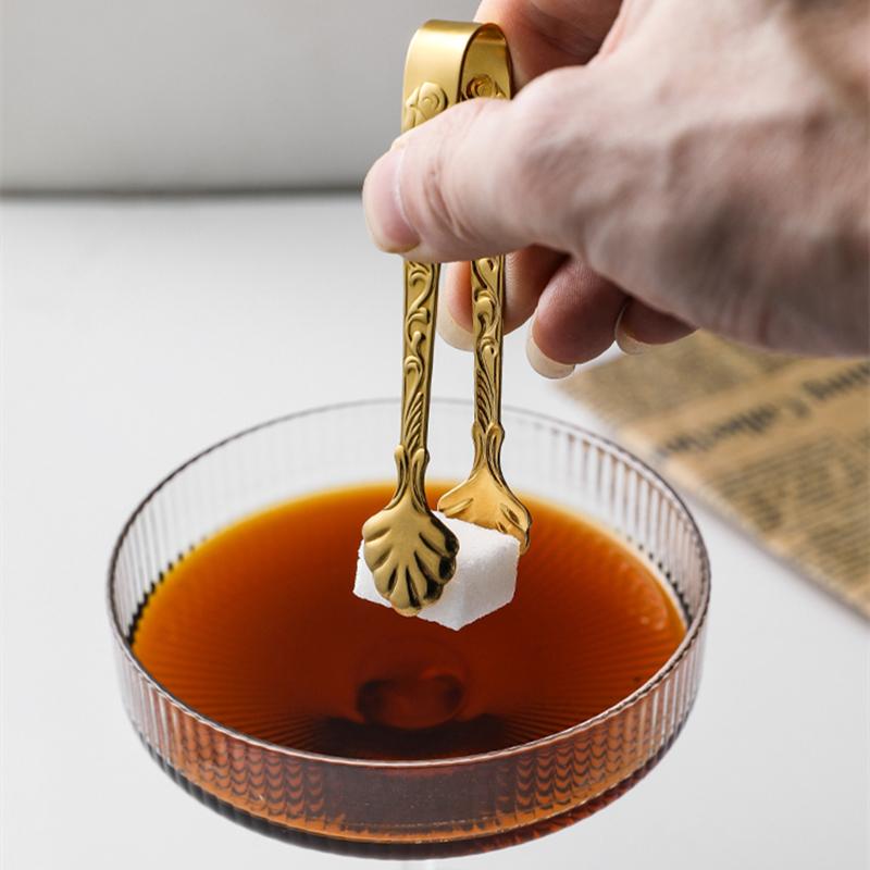 Rose Pattern Mini BBQ Food Clip Tongs 304 Stainless Steel Ice Cube Holder Cooking Grill Fruit Salad Clamp Kitchen Accessories