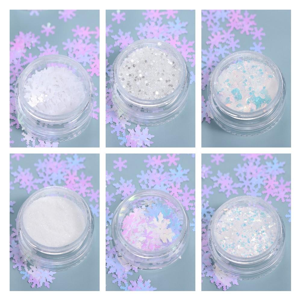 6 шт./набор Пигментная пыль для ногтей Рождественские пайетки для ногтей Инструменты для маникюра Рождественские аксессуары для ногтей Рождественские блестки-хлопья